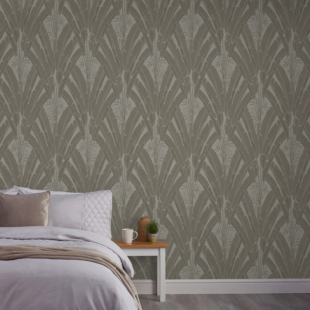Elevate your space with Fresco Leaves Beige and Gold Wallpaper, a sophisticated blend of classic and contemporary style. The traditional neutral palette and on-trend tropical leaf design create an elegant atmosphere perfect for bedrooms, living rooms, or hallways. This sustainable wallpaper boasts water-based inks, is phthalate-free, and produced with a CO2-neutral process. Its smooth finish and paste-the-paper application ensure effortless installation. With a straight match and 64cm repeat, the 10m long rolls are 52cm wide, promising seamless coverage.