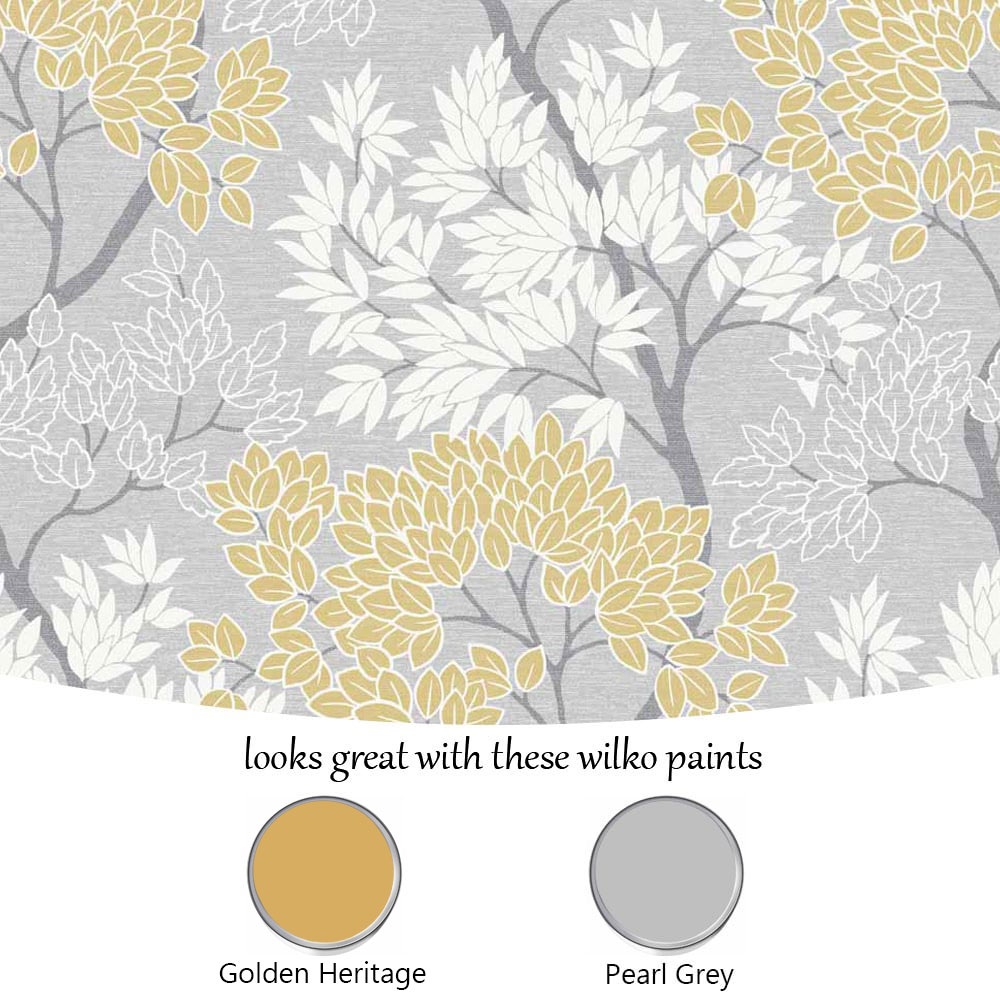 This elegant Ribbon Geo wallpaper will dramatically transform any room. Light grey and rose gold ribbons cascade in a graceful, classical geometric design, highlighted with metallic and textured accents against a pale grey background. Paste the paper application, spongeable, straight match, 32cm repeat, 10m roll length, 52cm roll width.