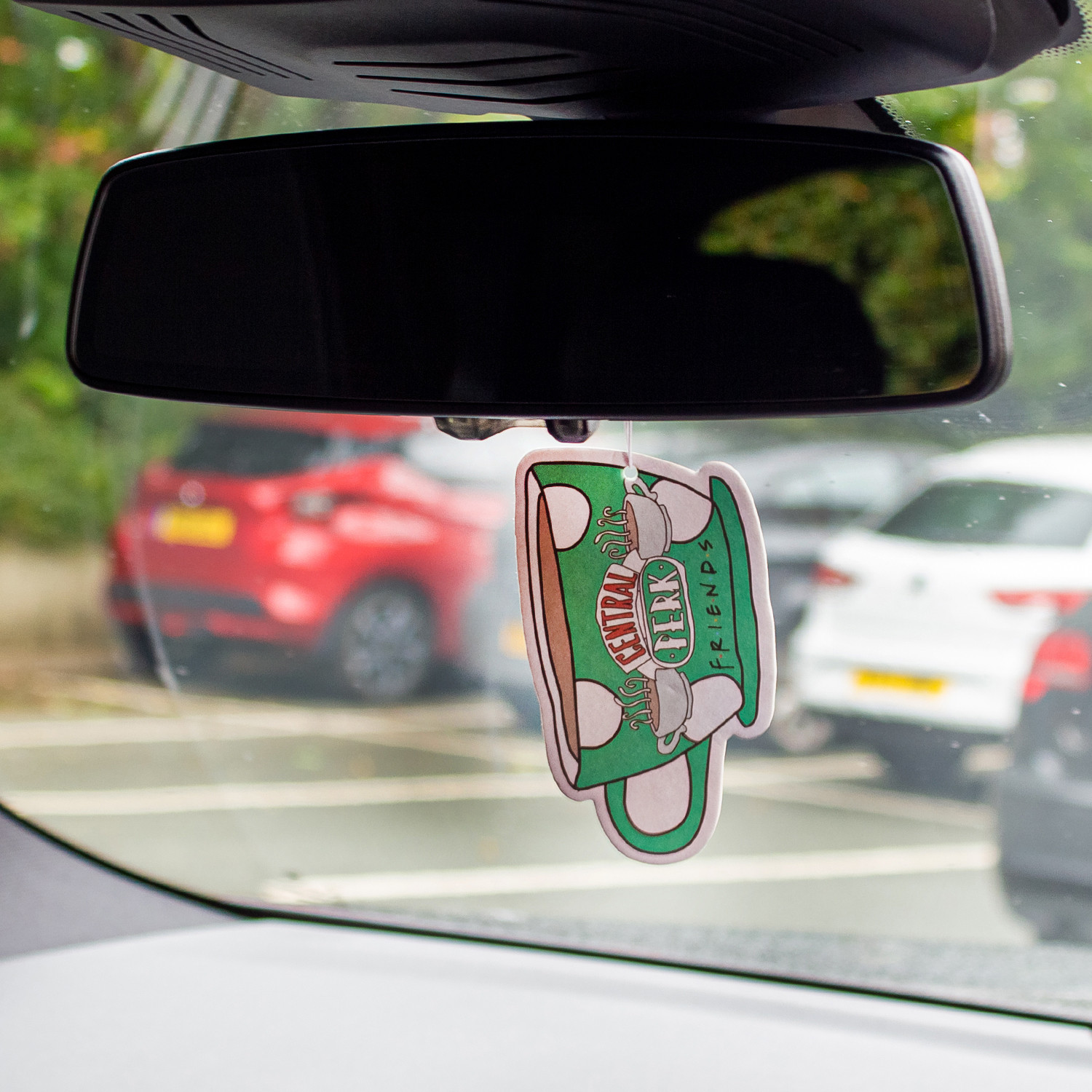 Any devotee of Friends will adore this triple pack of Friends Air Fresheners for their vehicle! Each air freshener, shaped to resemble an iconic image from the series, including a Central Perk coffee cup, will emit a delightful cherry, vanilla, or bubblegum fragrance throughout the car when suspended from the rear-view mirror.