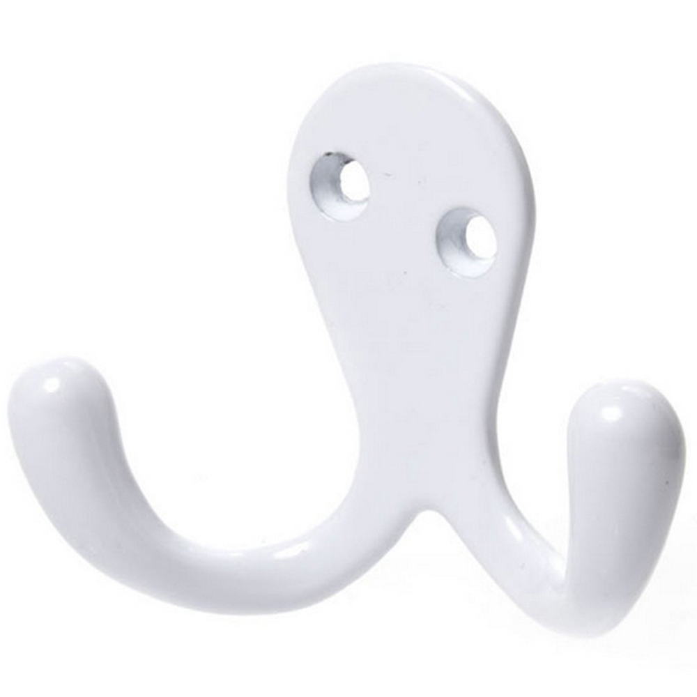 A robust double coat hook for versatile storage solutions. Ideal for bathrooms, bedrooms, kitchens, sheds, hallways—anywhere extra hanging space is needed. Simple screw fixing allows for easy wall mounting. The longer, upturned hook design securely supports heavier items like coats, boots, or tools.