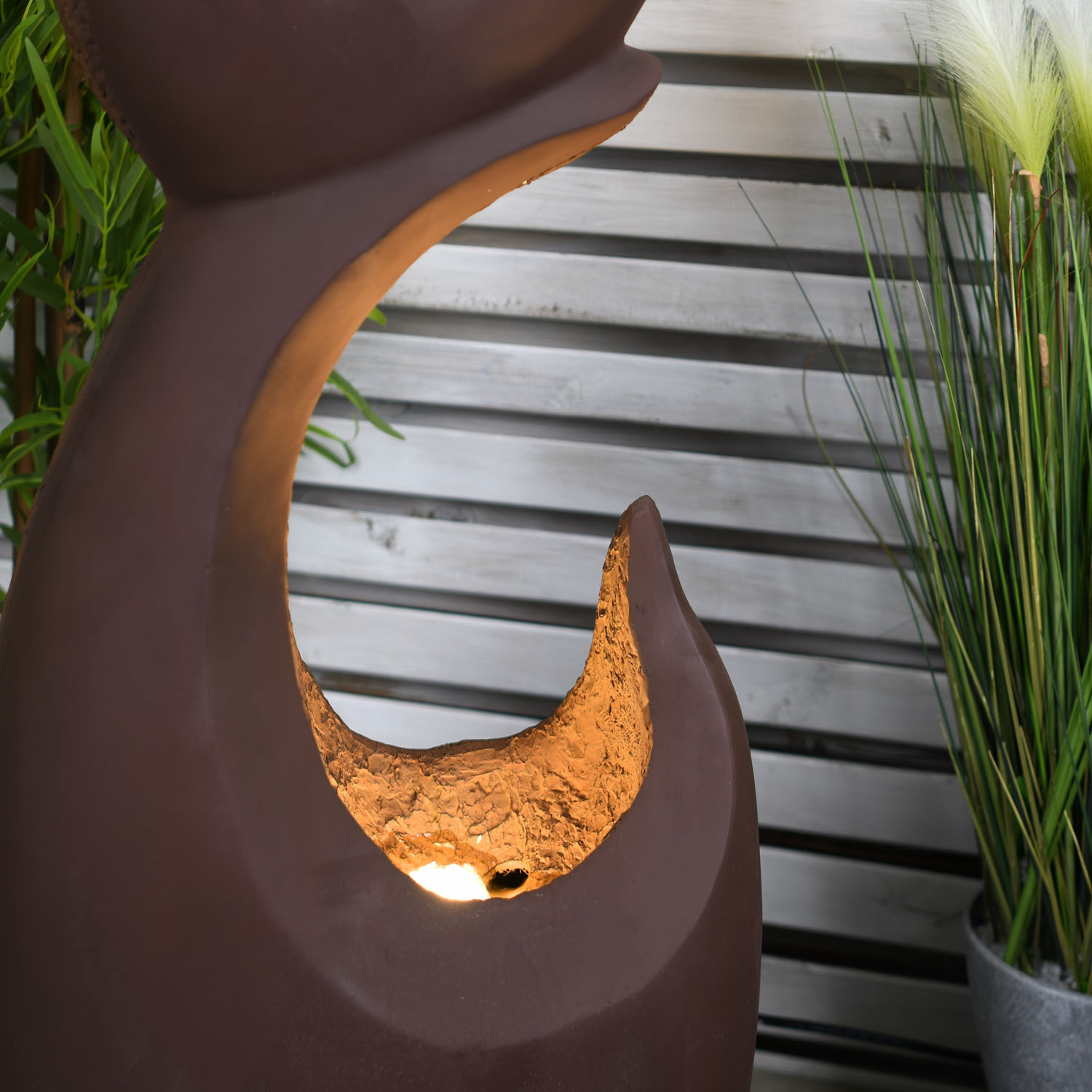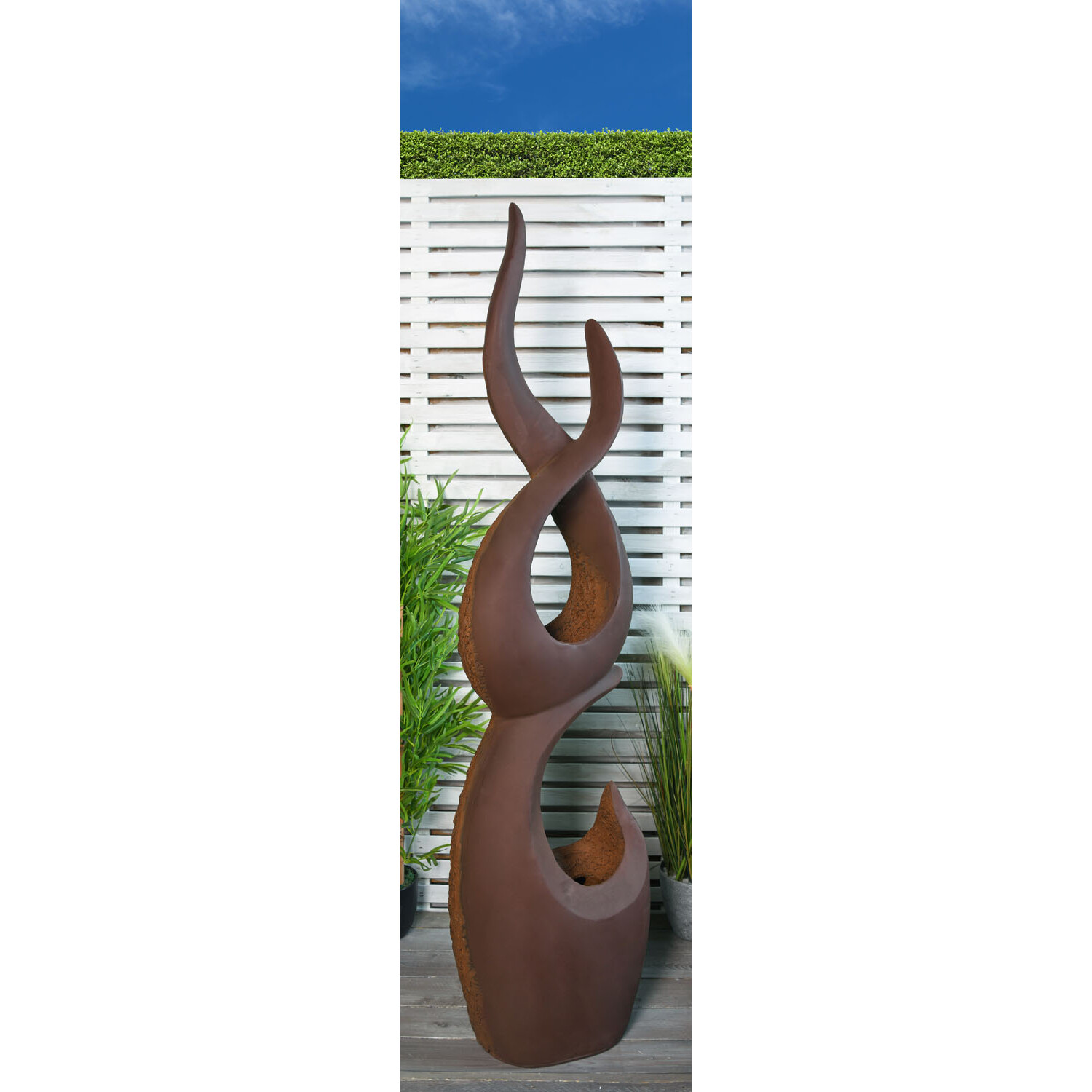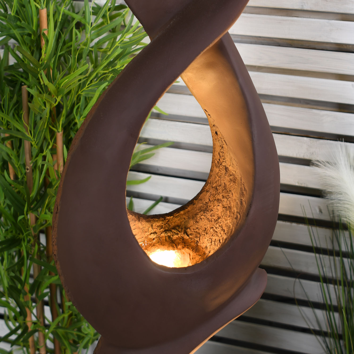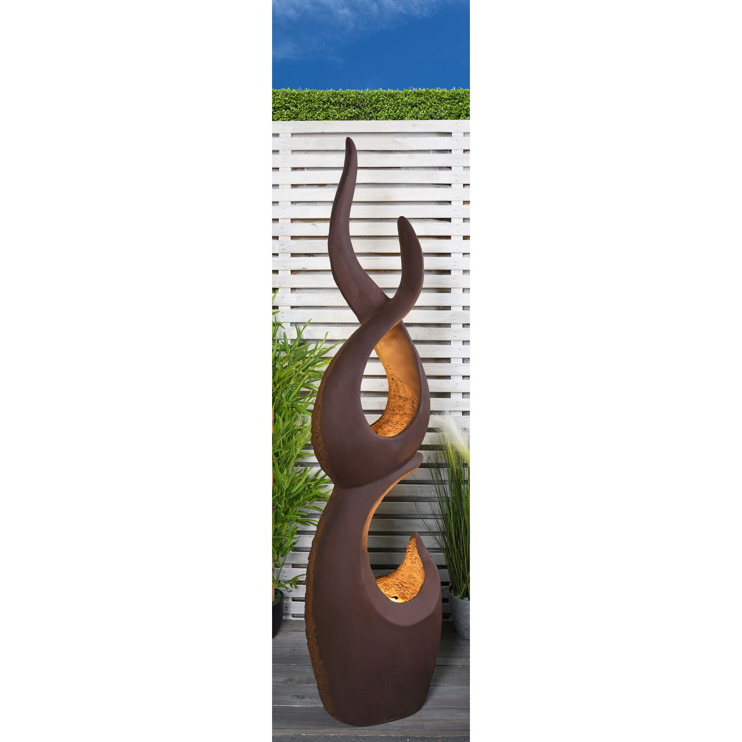 Elevate your outdoor space with the Fuego water feature, a stylish addition that blends modern elegance with antique charm. This gracefully curving fountain boasts a durable polyresin construction, meticulously crafted to mimic the look of weathered metal. Rust-brown tones and copper highlights create a stunning, aged aesthetic. Enjoy the tranquil sounds of gently flowing water, enhanced by integrated LEDs that illuminate the stream, creating a calming ambience. This self-contained fountain requires minimal maintenance, offering a peaceful retreat in your garden.