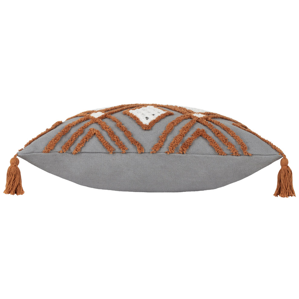 Elevate your home's aesthetic with the Aquene Charcoal and Brick Tufted Tasselled Cushion. This charming cushion, crafted from 100% cotton, boasts a diamond tufted pattern for a touch of sophisticated texture. Finished with a tassel trim and convenient zip fastening, it effortlessly blends style and comfort. Perfect for sofas, armchairs, beds, and more, this cushion adds a touch of elegance to any room.