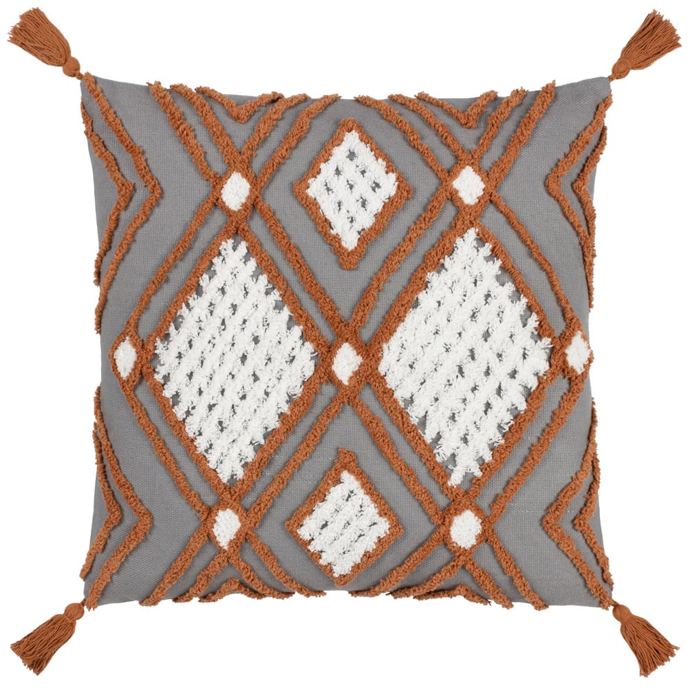 furn. Aquene Charcoal and Brick Tufted Tasselled Cushion