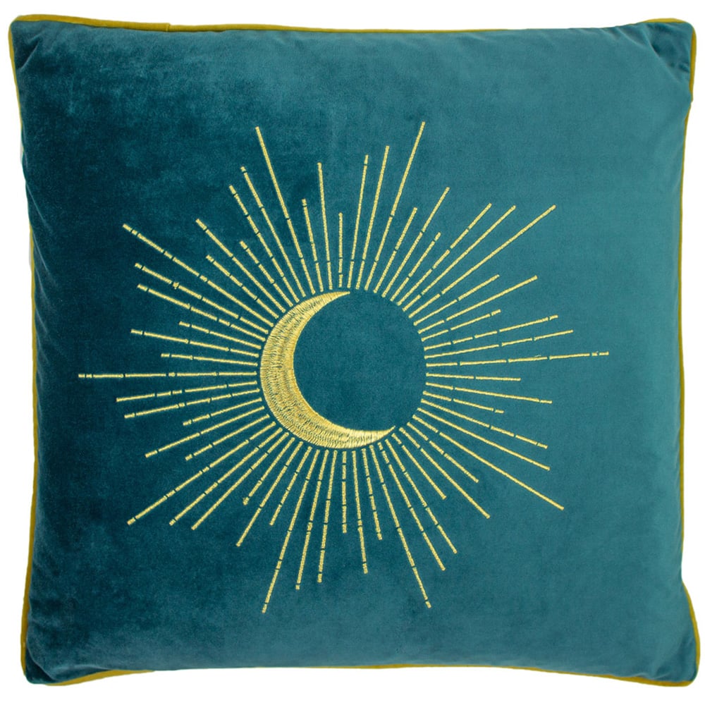 Add a touch of celestial charm to your home with the Astrid Teal Embroidered Celestial Cushion. Its luxuriously soft yet durable fabric, accented with gold-stitched embroidery, creates a lovely addition to sofas, chairs, beds, or any space needing a touch of elegance. Finished with velvet piping and a hidden zip closure, this cushion offers both style and comfort.