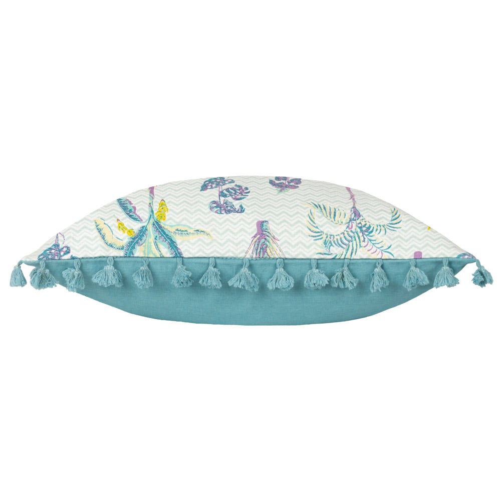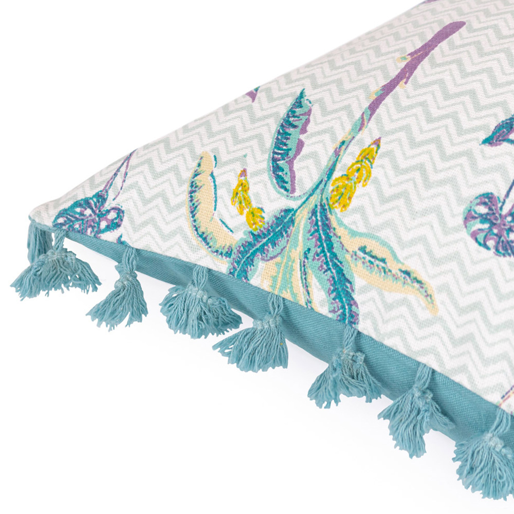 Embrace the beauty of the outdoors with this Chamae Lilac Floral Tasselled Cushion. Its luxuriously soft 100% cotton cover offers a reversible design: one side showcases an abstract desert floral pattern, while the other provides a plain reverse. A hidden zip ensures effortless convenience, completing this charming addition to your home.