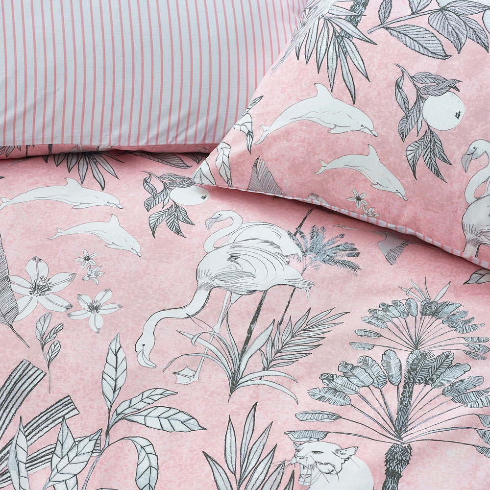 furn. Colony Palm King Size Pink Botanical Duvet Cover Set