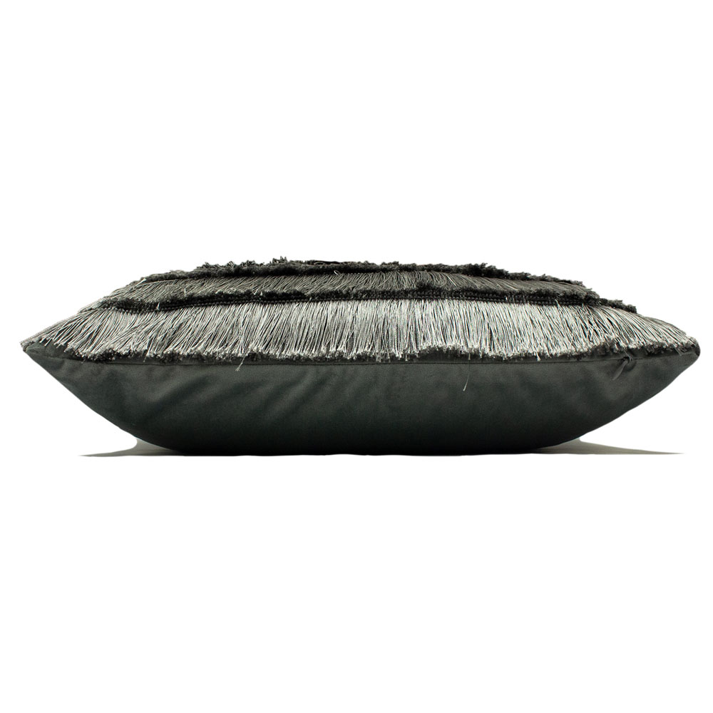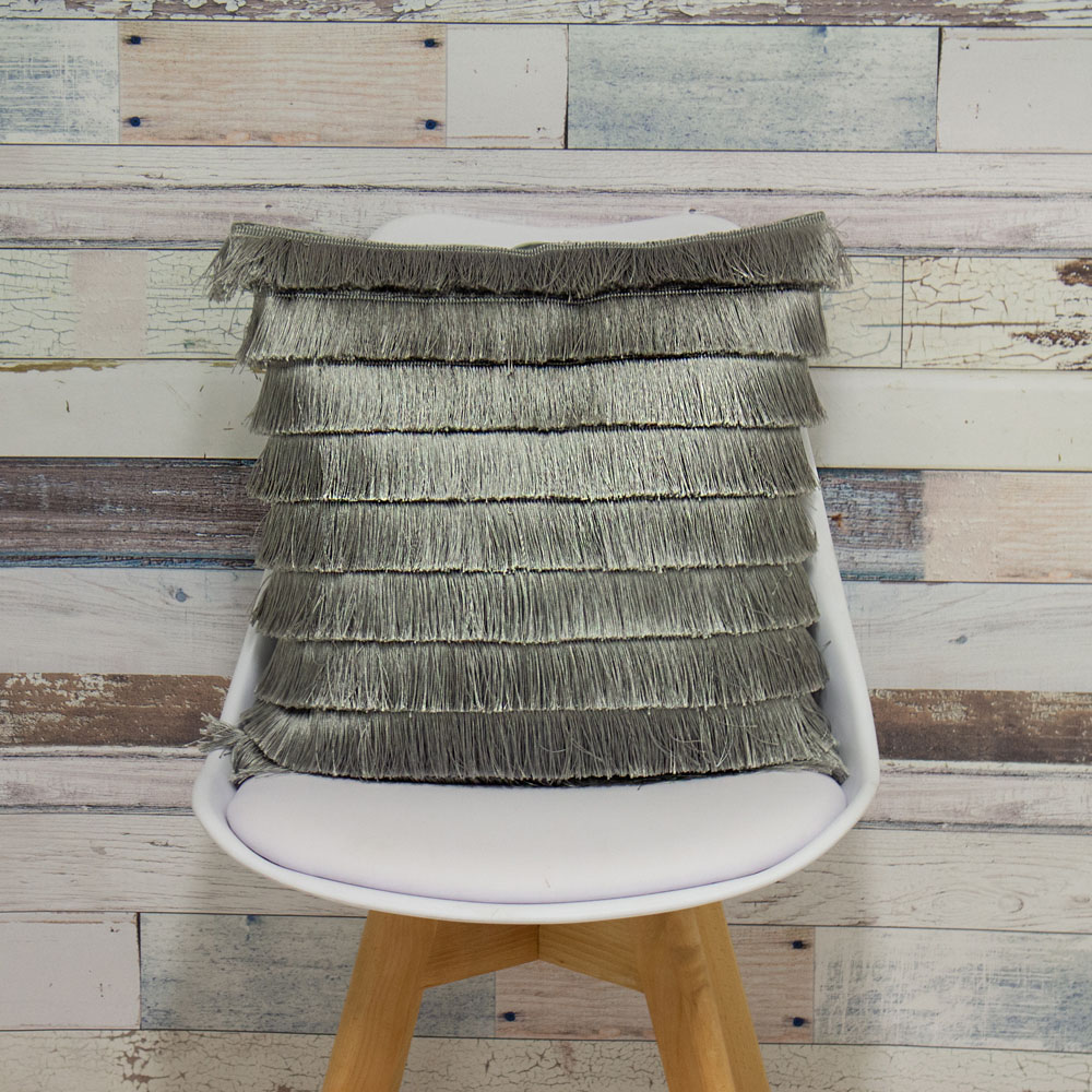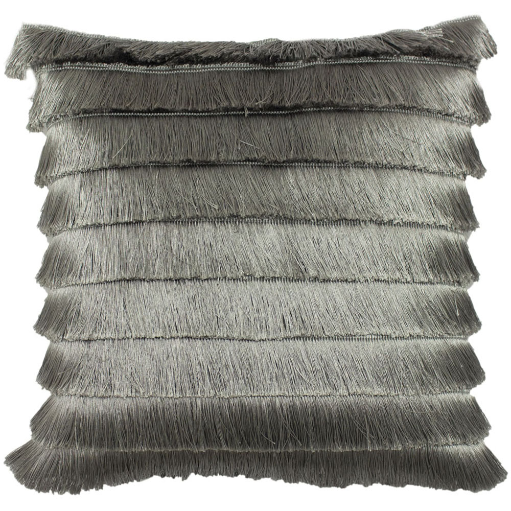 Add a touch of roaring twenties glamour to your living space with this Flicker Silver Fringed Cushion. One side boasts a tiered fringe, reminiscent of the Gatsby era, while the reverse offers a luxuriously soft, plain faux velvet for a versatile look. Crafted from 100% polyester for lasting comfort, this cushion features a discreet zipper.