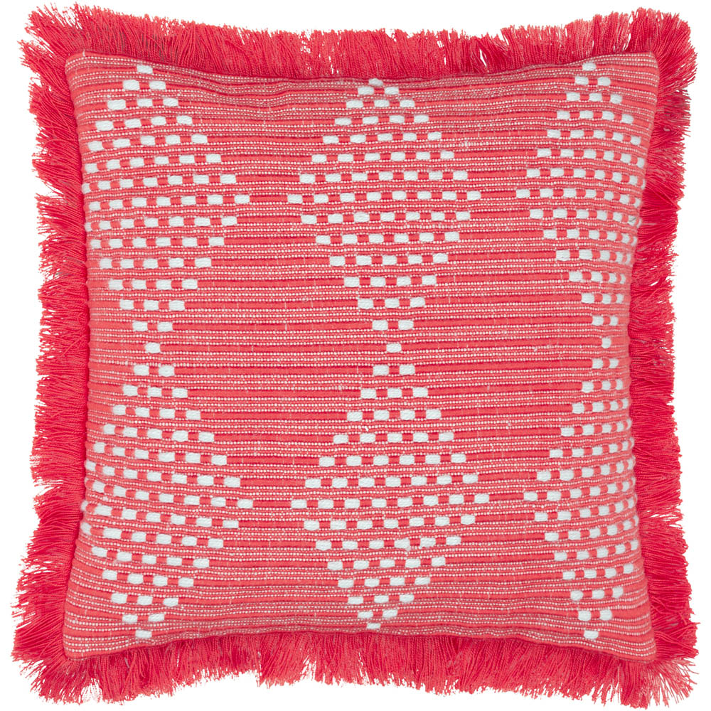 Elevate any space with the furn. Kadie Feather Filled Woven Pink Cushion 45 x 45cm, a stunning piece inspired by boho trends. Its woven geometric design, made from durable, recycled PET fabric, brings an eye-catching element. Perfect for both indoor and outdoor settings, this cushion features fringed edging for a stylish finish and a polyester reverse for added comfort. Weatherproof and resilient, the cushion transforms patios, balconies, and terraces into unique, inviting areas.