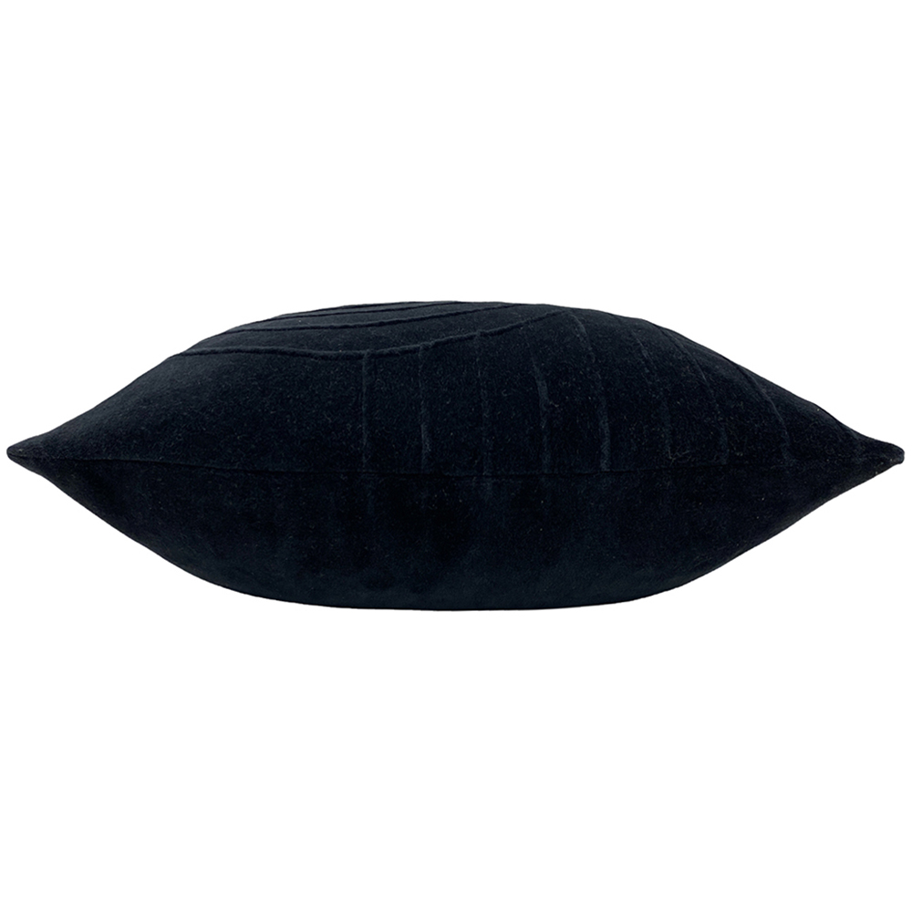Crafted from 100% cotton fabric, this black square cushion features a geometric pleated design in cotton velvet for a touch of sophisticated style. The subtle texture and rich colour instantly elevate any sofa, chair, or bed. Finished with standard knife edging and a hidden zip for a clean, refined look. The Mangata design, inspired by the moon's reflection on water, adds a unique and calming element to your home.