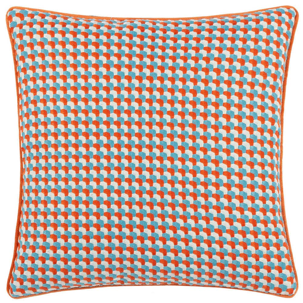 Add a vibrant pop of colour to your living space with this geometric jacquard cushion. Crafted from colourful threads, it boasts a striking woven geometric design, perfect for adding personality to your sofa or armchair. The reverse side offers a luxurious plain velvet finish, complemented by a neat piped trim. A hidden zip ensures a clean, seamless look. This cushion is ideal for injecting a splash of colour and texture into your home.