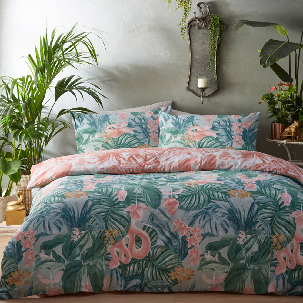 furn. Medinilla Super King Size Sage and Blush Tropical Duvet Cover Set
