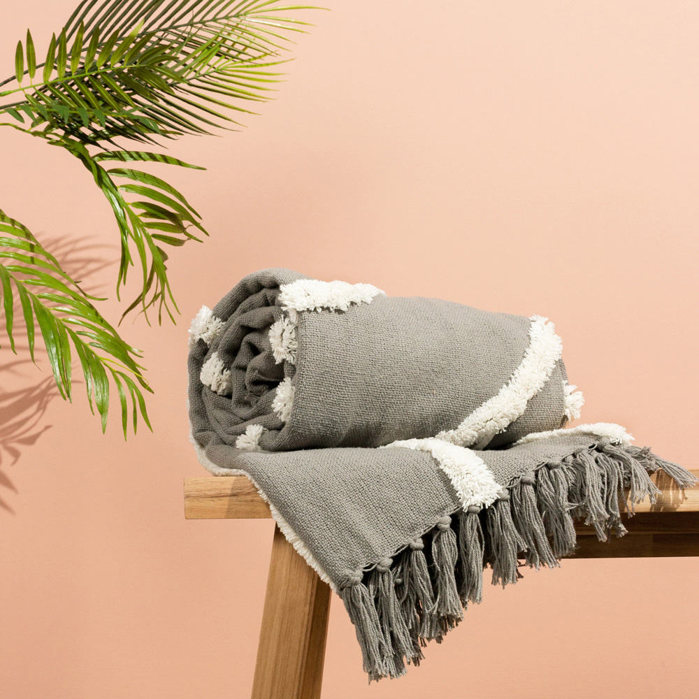 furn. Rainbow Grey Tuft Tasselled Throw 130 x 150cm