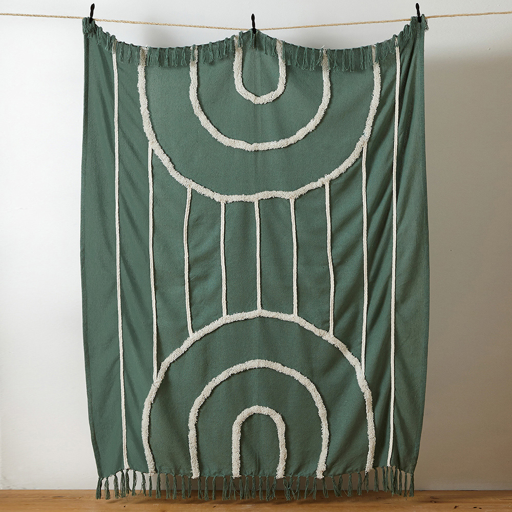 Add a touch of effortless elegance to your living space with this Rainbow Sage Green Tufted Throw. Its warm-toned woven base is beautifully complemented by a vibrant cotton tufted rainbow design, instantly captivating the eye and sparking conversation. Finished with charming tassel edging, this throw is more than just a decorative accent, it’s incredibly soft and cosy, offering the perfect blend of comfort and style. A generous 130 x 150cm, it's the ideal size for snuggling up on the sofa or draping over your favourite armchair.