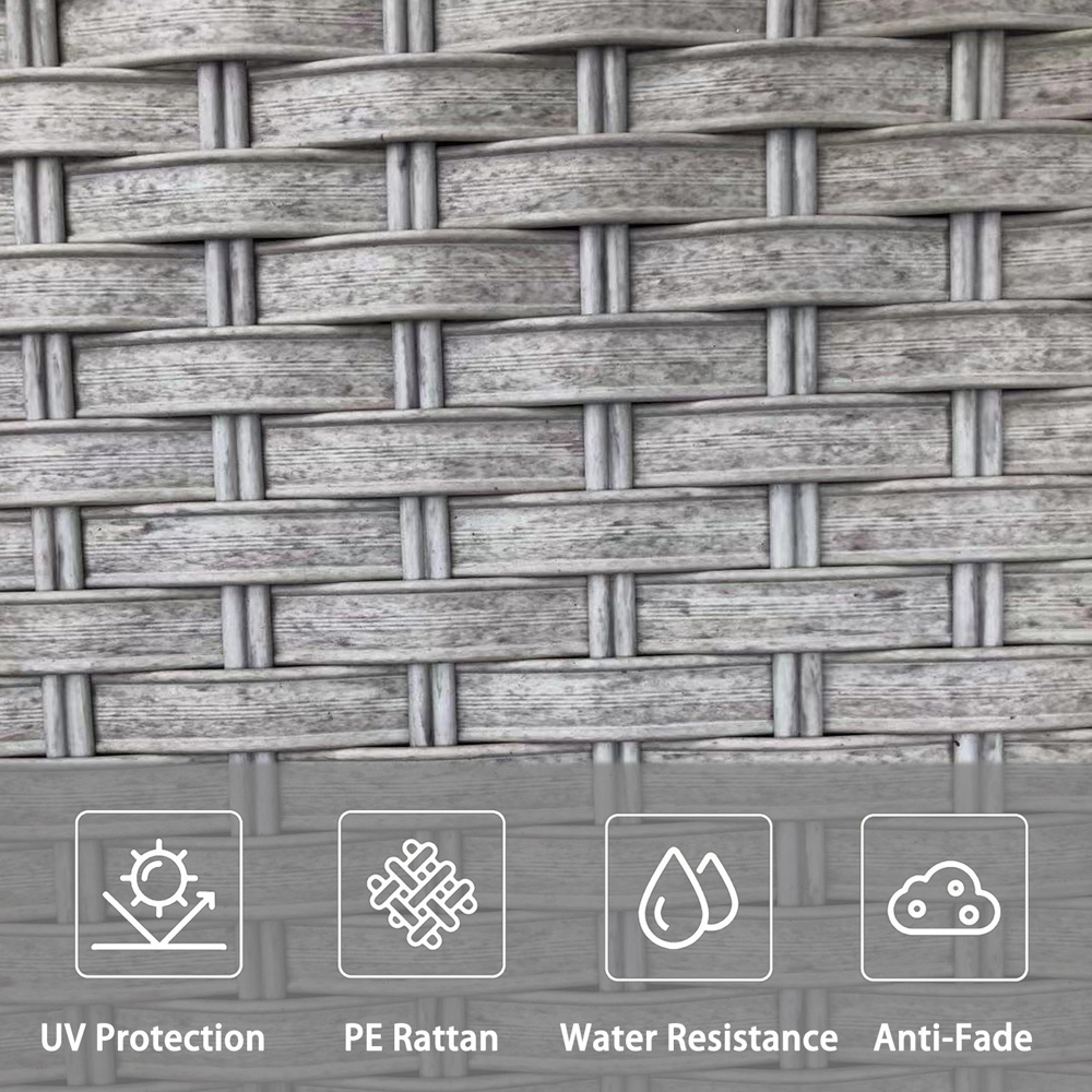 Crafted with premium, hand-woven PE rattan, this three-piece set promises durability and effortless maintenance. Weatherproof, UV-resistant, anti-fade, and low maintenance, it's designed for long-lasting enjoyment. Sink into the luxuriously thick padded seat and back cushions, offering exceptional comfort whether you're sitting or reclining. The cushion covers feature quick-zip closures and are machine washable for easy care. An integrated ice bucket ensures your drinks and fruit stay refreshingly cool on sunny days, while the tabletop provides ample space for storage. The galvanised frame offers extra strength and resists rust, further enhancing the set's robust construction. Wrapped in PE rattan for added sturdiness, weather resistance, and UV protection, this set is sure to impress. Recline and unwind with the 150-degree adjustable backrest and lift-up footrest, allowing you to find the perfect position for ultimate relaxation.