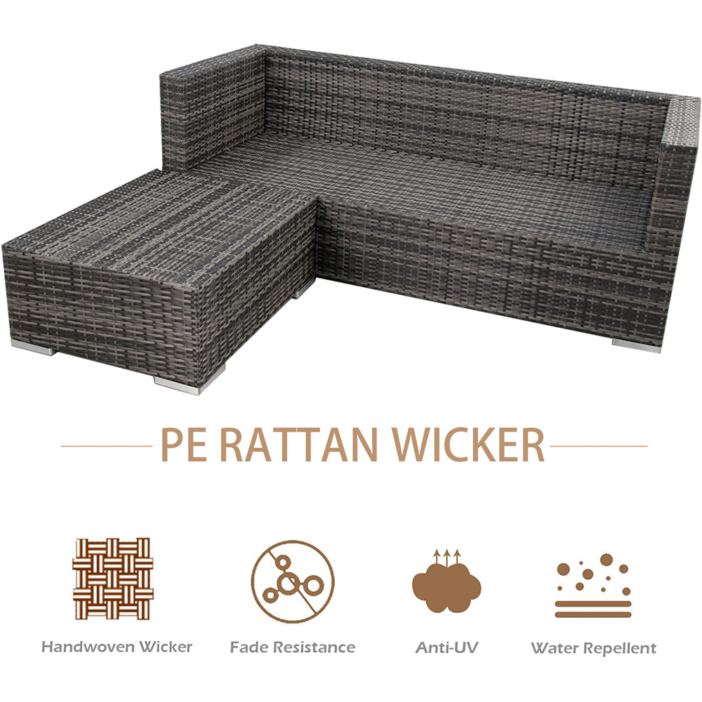 Craft a haven on your patio or in your conservatory with the Furniture One 4 Seater Garden Corner Sofa Set. Designed to accommodate up to five people, it's perfect for creating memorable moments with loved ones. The on-trend V-shaped armrests and backrests, paired with wide armrests and sumptuously thick cushions featuring beautifully braided edges, provide both style and comfort.