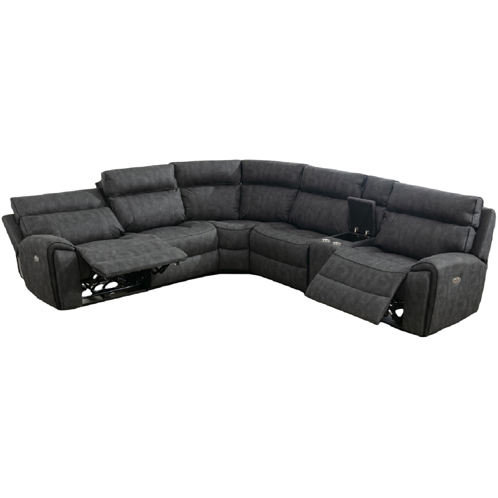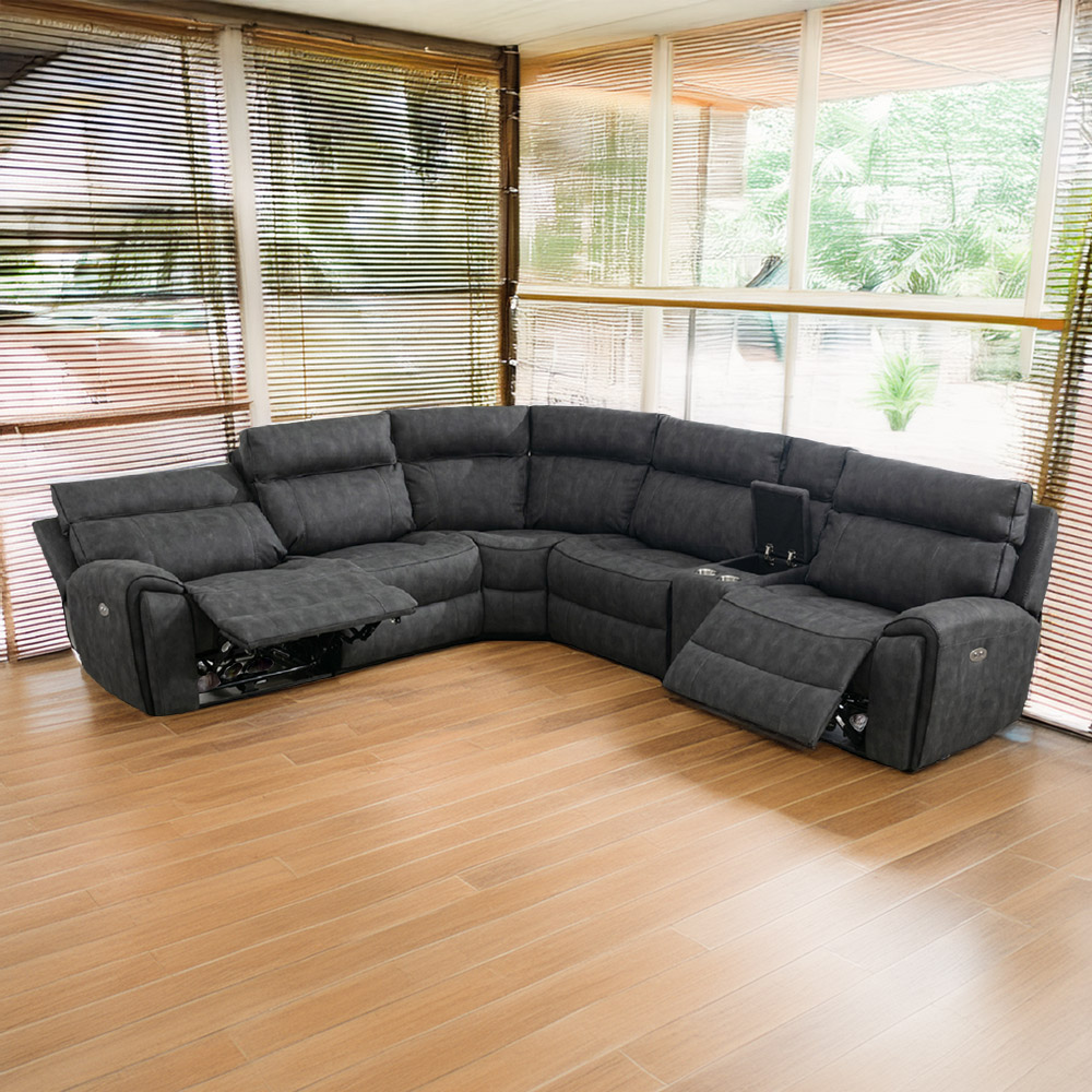Furniture One 5 Seater Dark Grey Power Corner Recliner Sofa Set with Cup Holders