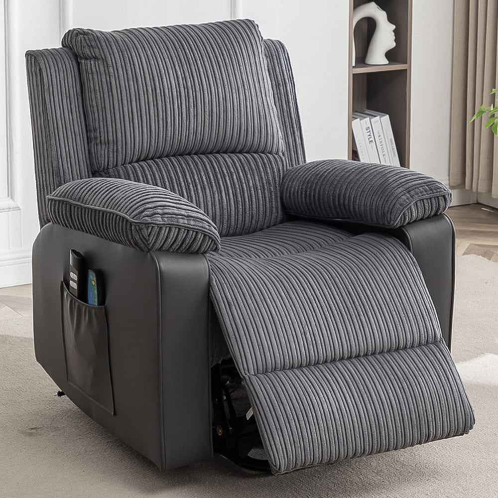 Sink into unparalleled comfort with the Furniture One Grey Electric Rise and Recliner Armchair, complete with a built-in massager. Designed for ultimate relaxation and ease, this armchair features a dual motor mechanism, offering effortless adjustment to your preferred position. The user-friendly four-button controller independently operates the soft, foam-padded backrest and footrest, ensuring personalised comfort. Need a little help getting up? The rise function gently lifts the chair to an almost standing position, providing support for those who require assistance. And when it's time to unwind, the recline function adjusts the chair to a blissful snooze position, perfect for complete relaxation.