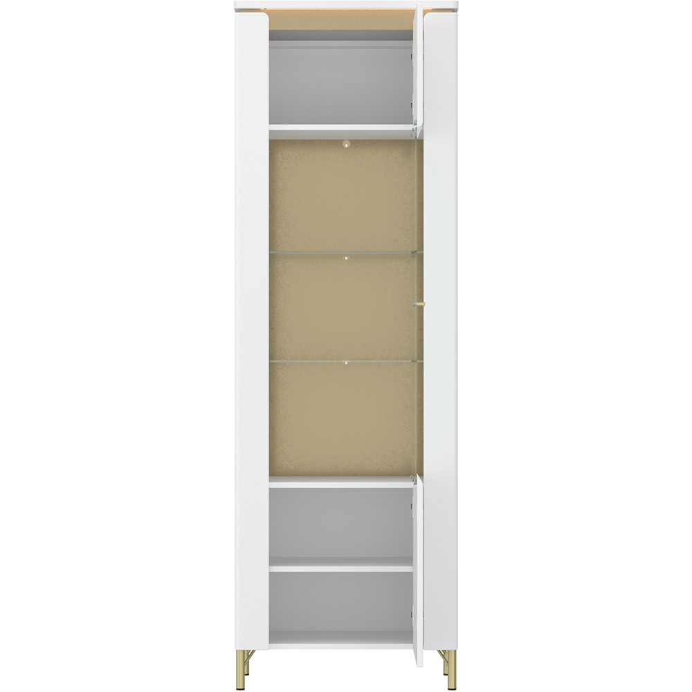 Enhance your home's aesthetic with the Lazio 1 Door Display Cabinet. This sophisticated piece seamlessly blends modern design with luxurious detailing. Its high-gloss white finish, accented with gold, creates a truly elegant statement. A perfect addition to any discerning home.