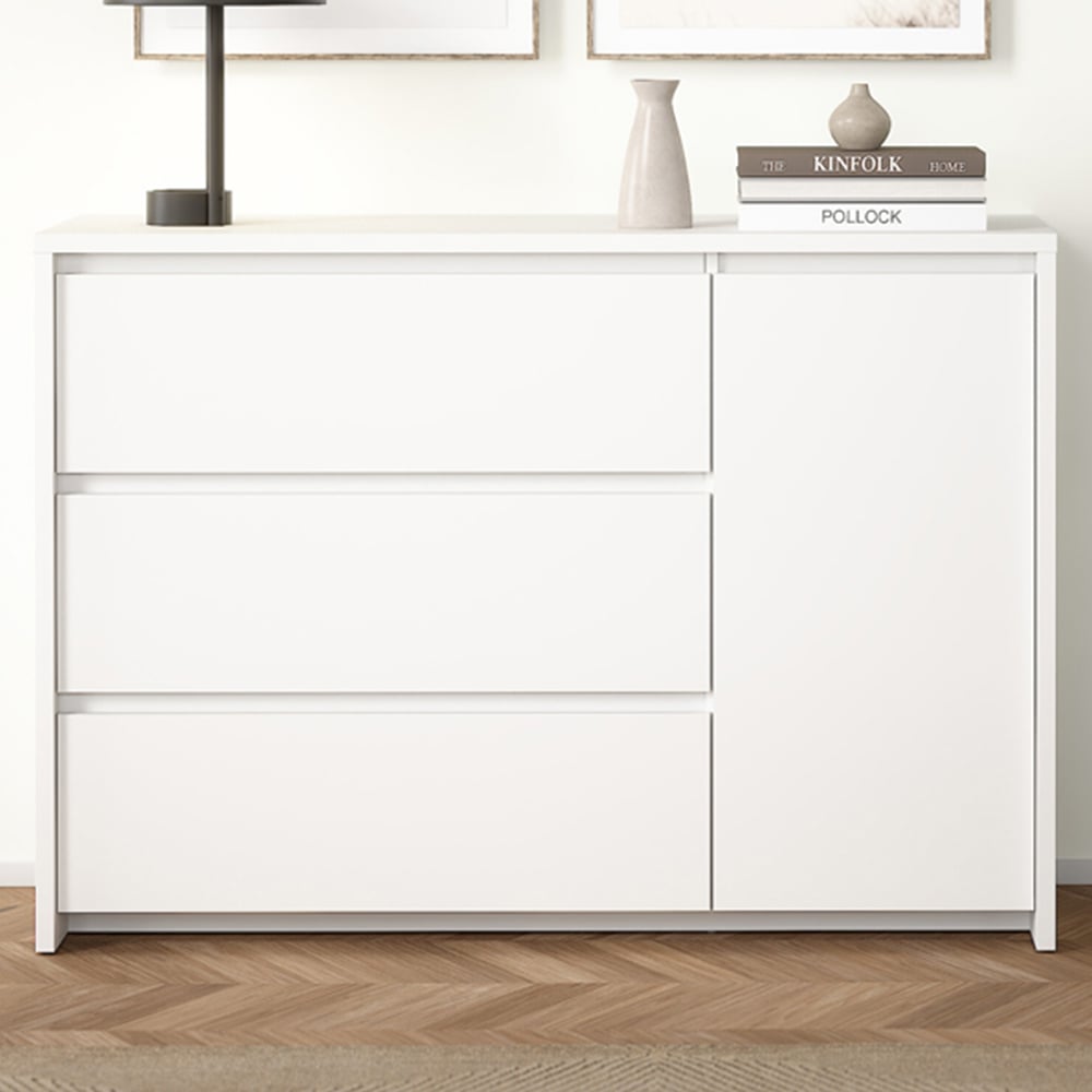 Furniture To Go Next White Single Door 3 Drawer Sideboard