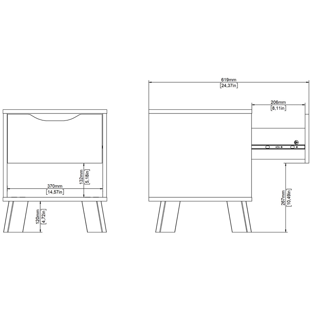 Enhance your bedroom's style and practicality with the Ikast nightstand. Crafted from Jackson Hickory and White, this piece boasts a single drawer, offering convenient bedside storage. Its modern design is complemented by vibrant colour accents, adding a touch of elegance to your space.