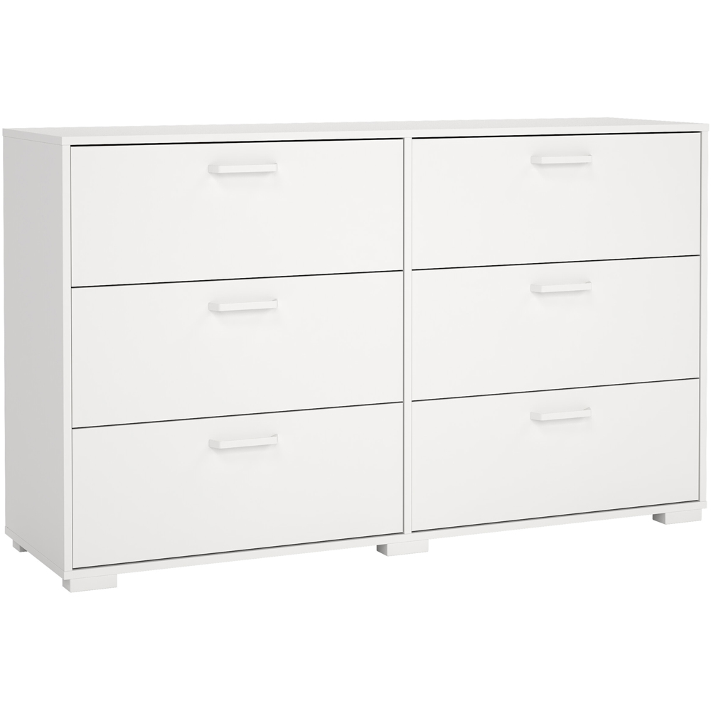 From simple bedroom furnishings to complete storage solutions, our range provides an effortless way to bring a fresh dimension to your bedroom. The Sofia Double Dresser, finished in a sleek white, features six spacious drawers, ideal for creating a serene and clutter-free space. Exuding understated sophistication and brightness, this stylish and timeless piece is perfect for design enthusiasts and homeowners alike, and will complement any interior for years to come.