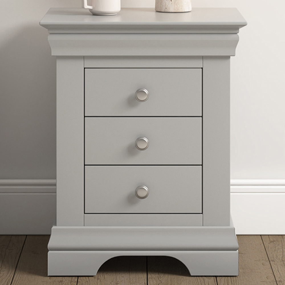 Seconique Bordeaux 3 Drawer Pebble Grey Bedside Table