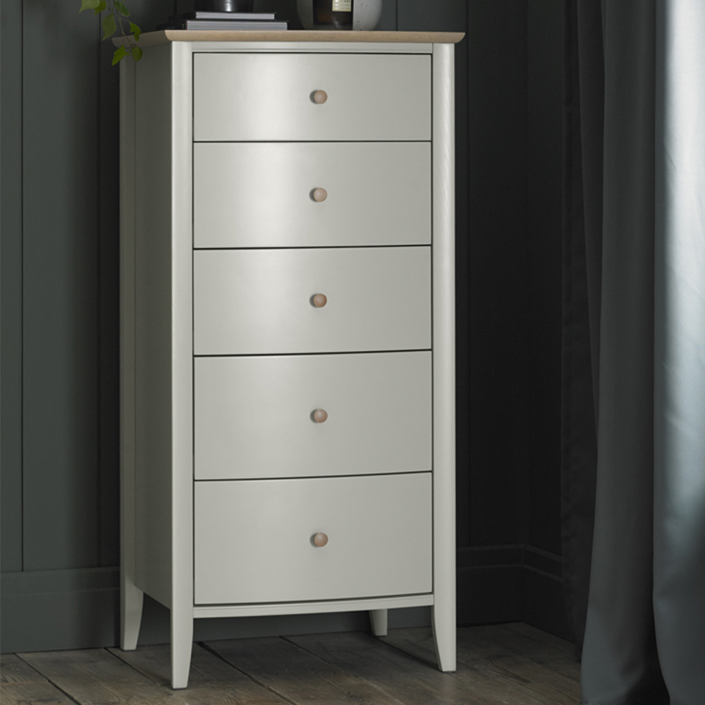 Montese Light Wood 5 Drawer Narrow Chest of Drawers
