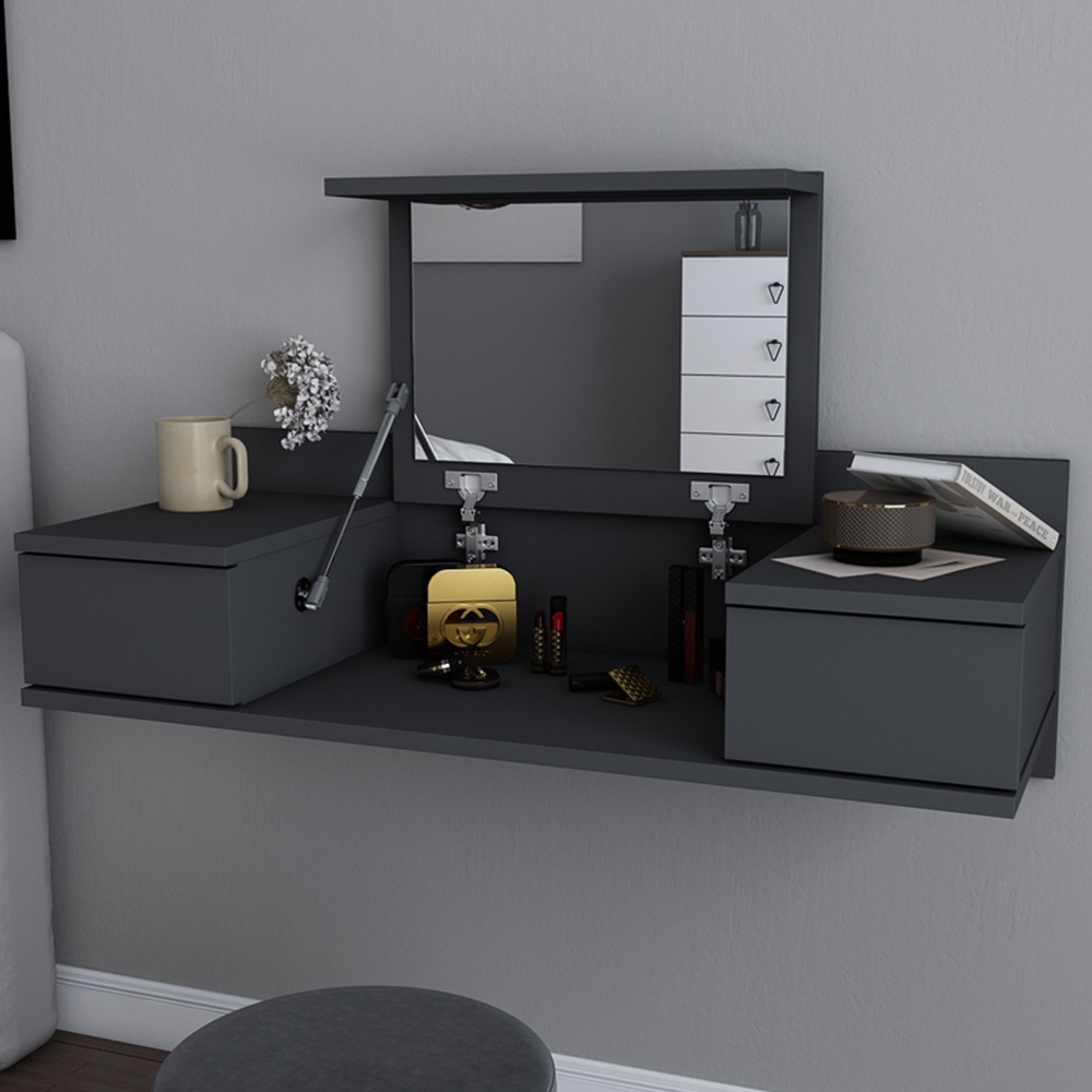 Decorotika Zenn Anthracite 2 Drawer Floating Vanity Make Up Table
