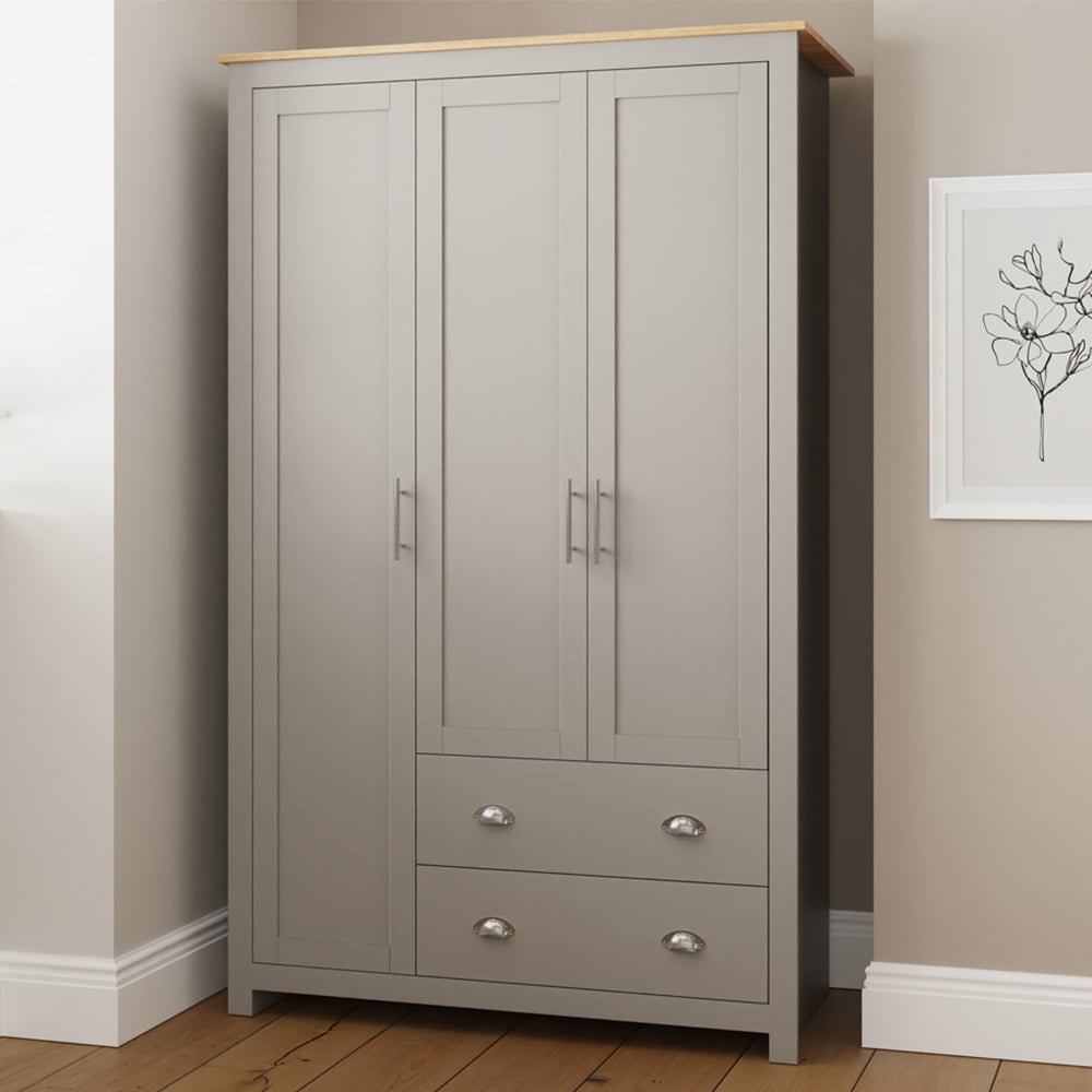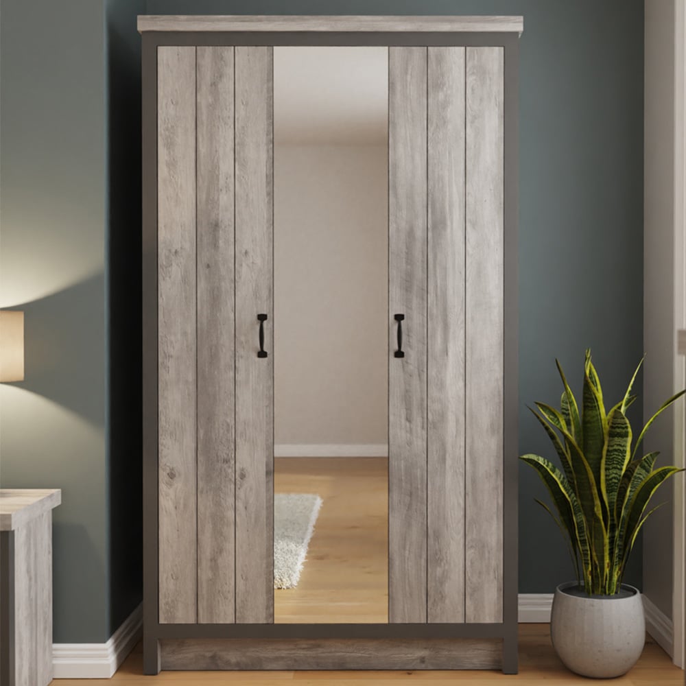 Crowndale Kent 3 Door Dusk Grey and Bardolino Oak Mirror Wardrobe