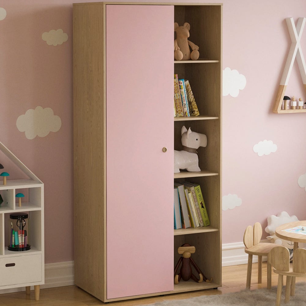 Junior Vida Neptune Single Door Pink and Oak Wardrobe