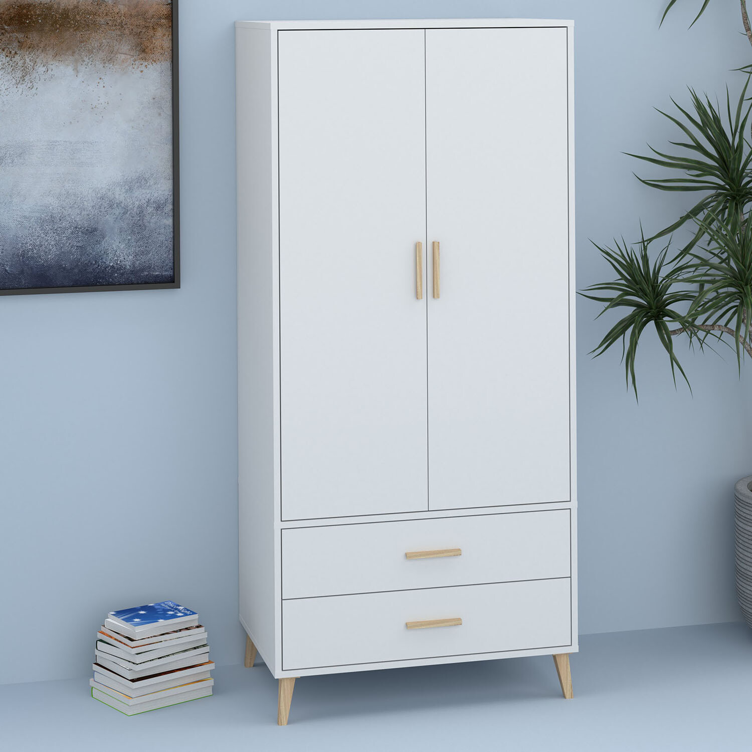 Home Source Bellevue White 2 Door Wardrobe with Hanging Rail