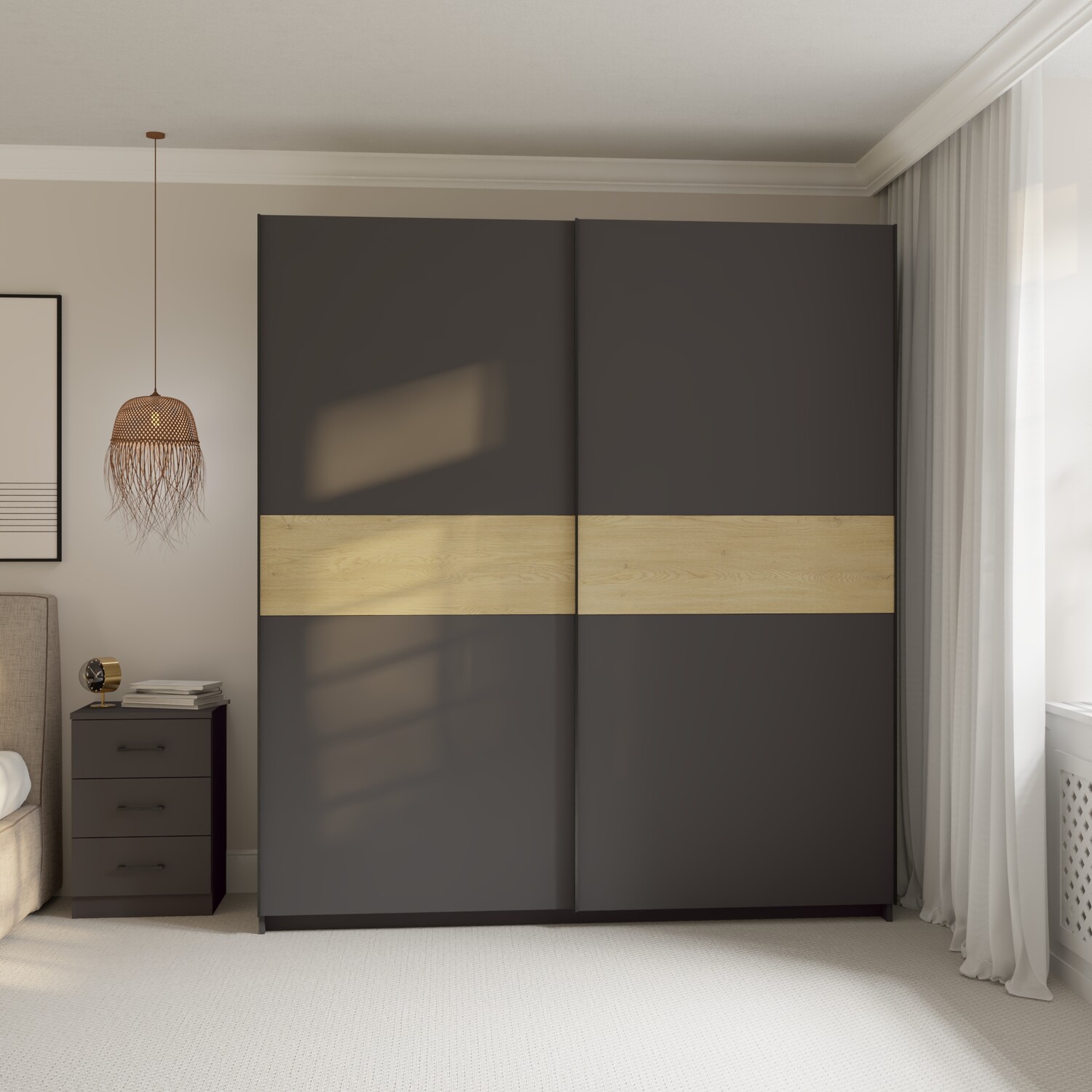Brooklyn Walnut and Black High Gloss 2 Door Wardrobe with Mirror