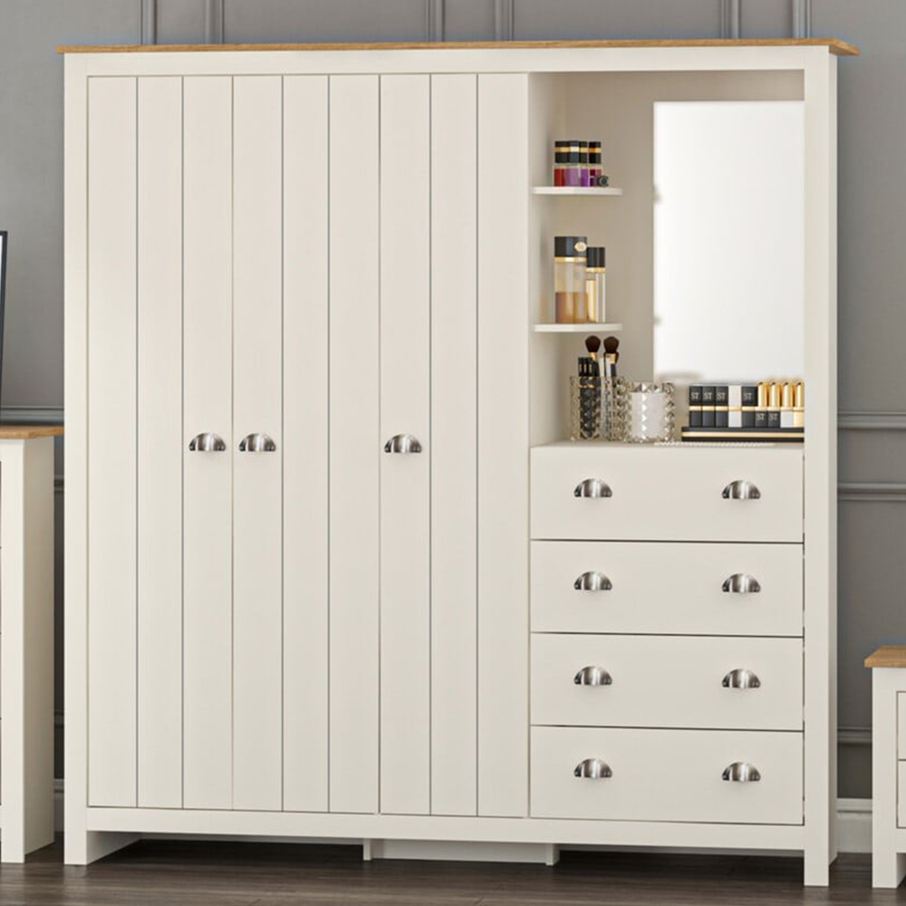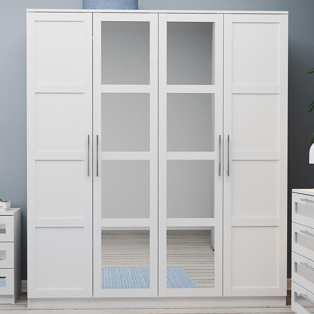 Evu Charlotte 4 Door White Mirror Wardrobe