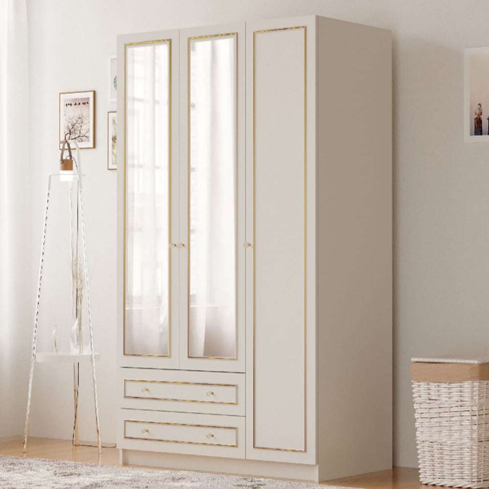 GFW Lancaster 3 Door 2 Drawer Cream Wardrobe