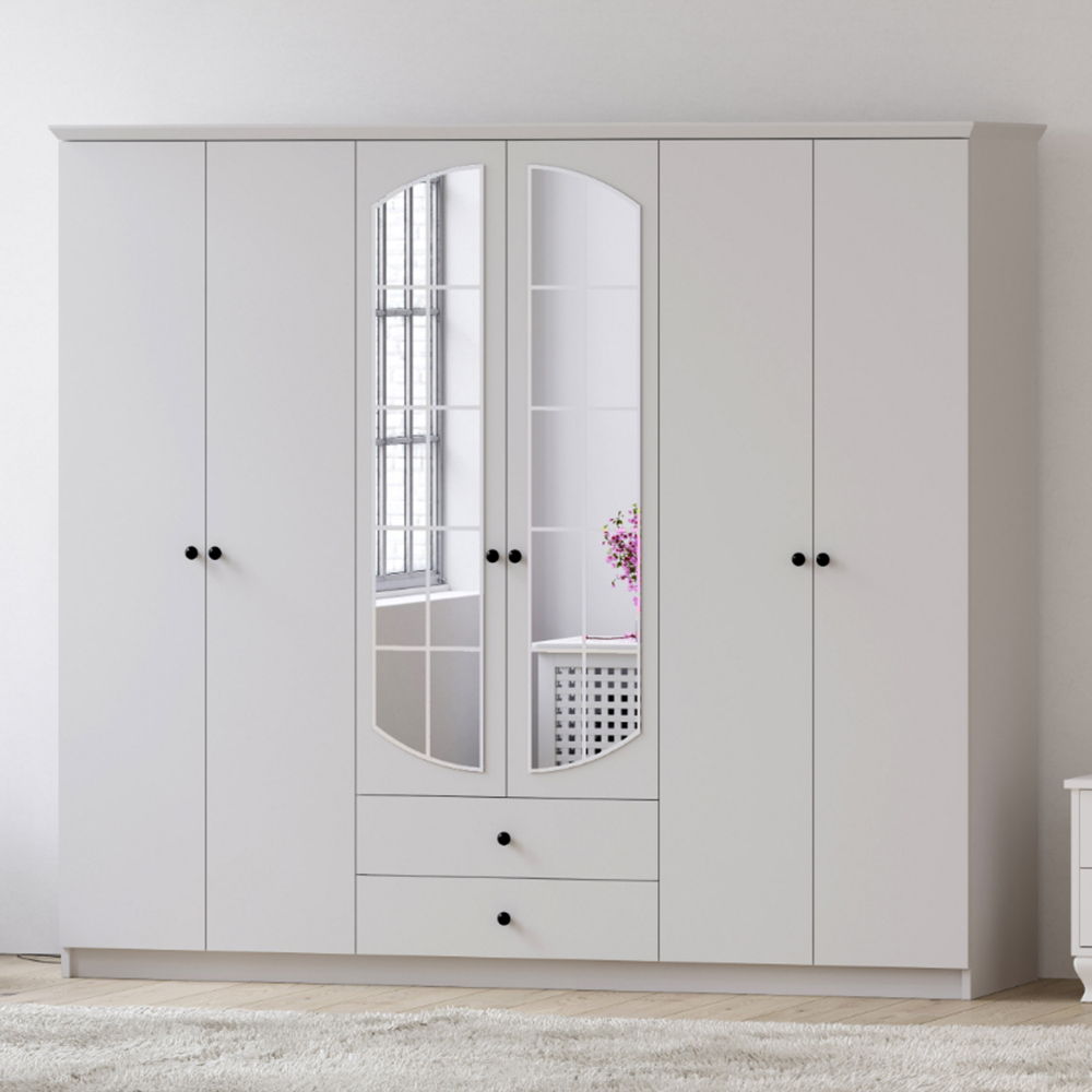 Evu CLEMENT 6 Door 2 Drawer White Wardrobe