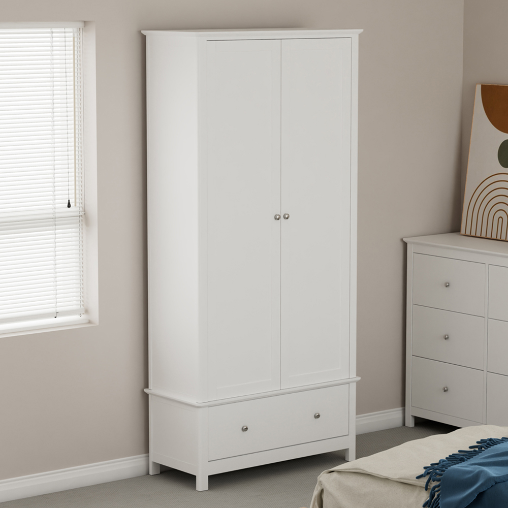 Julian Bowen Clermont 2 Door Single Drawer Surf White Wardrobe
