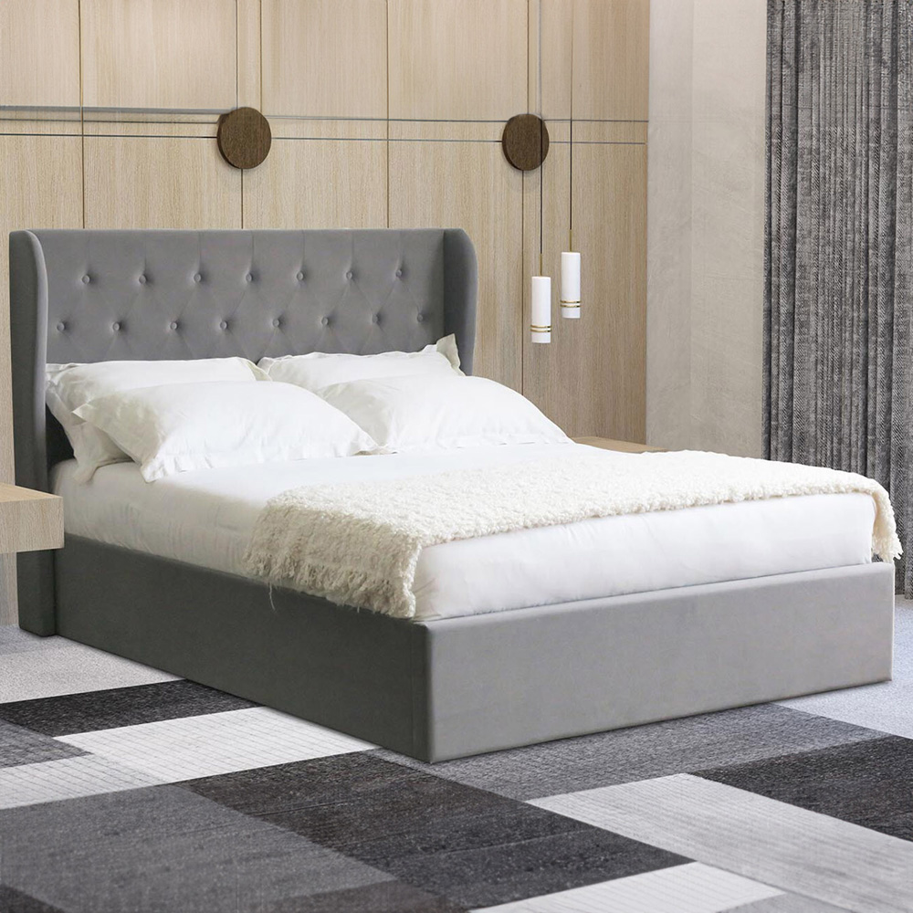 Hyacinth Double Grey Velvet Bed Frame