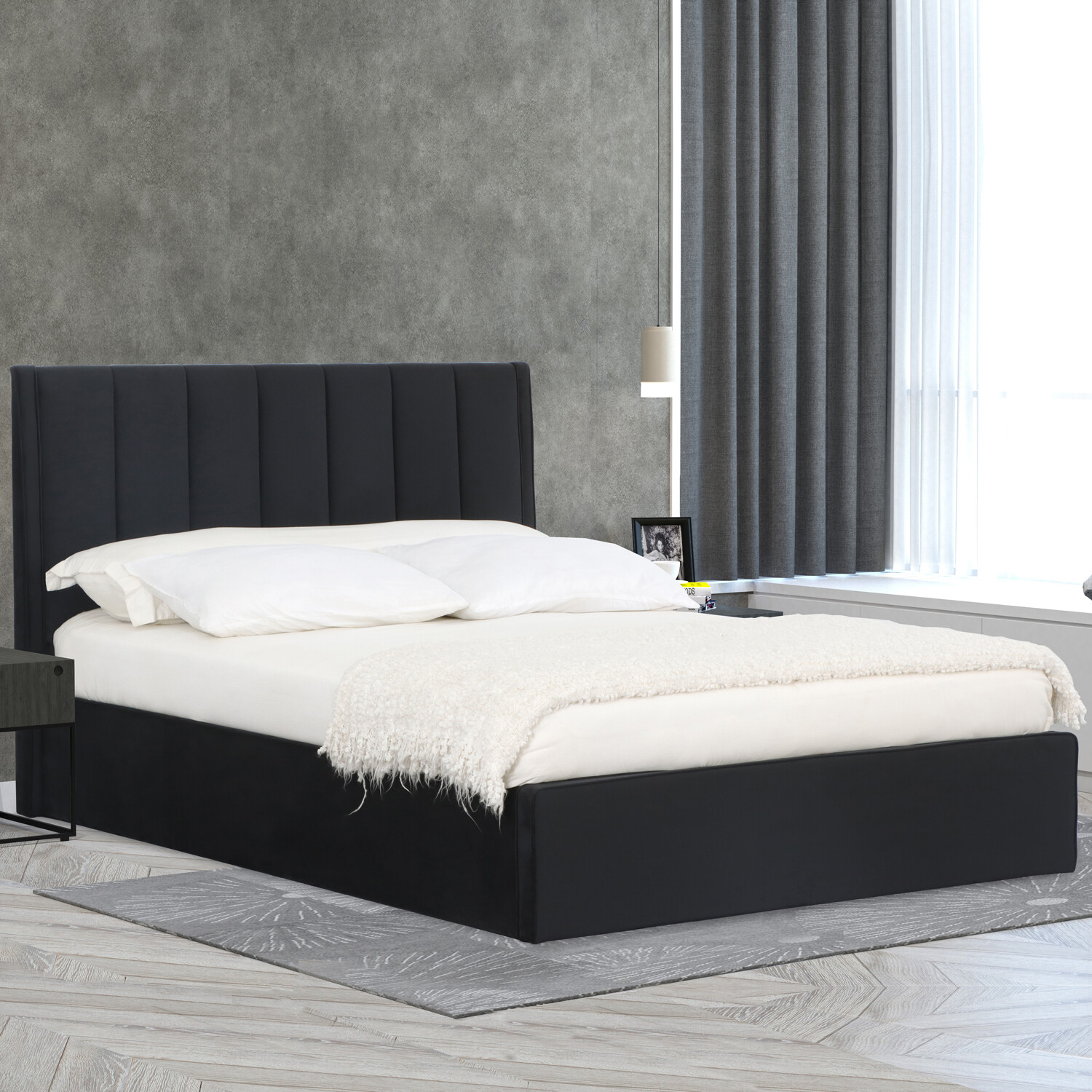 Aspire Double Black Linen End Lift Ottoman Bed with Buttoned Headboard