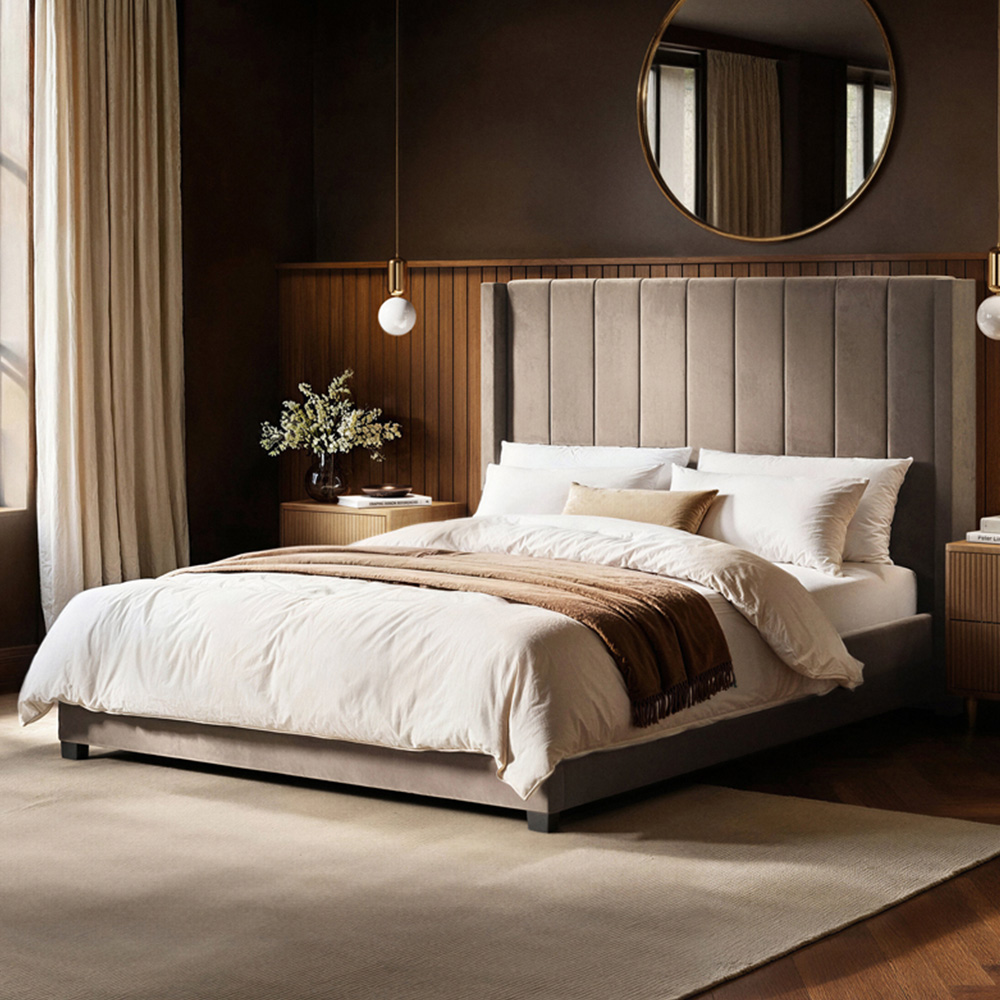 Catherine Lansfield Soho King Size Natural Twill Ottoman Wing Bed