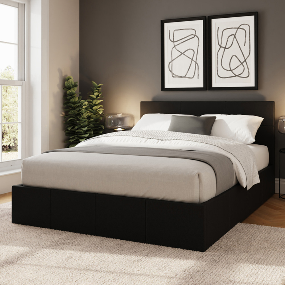 Aspire Double Black Linen End Lift Ottoman Bed with Buttoned Headboard