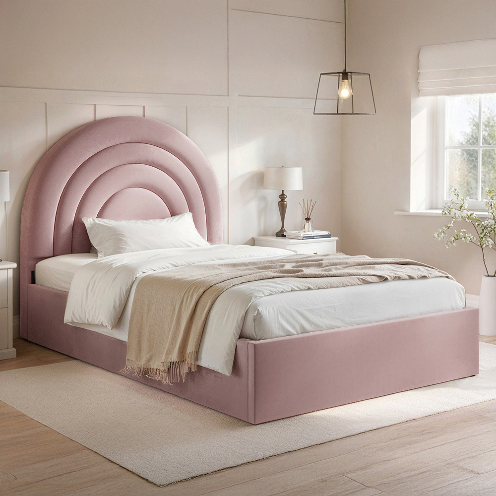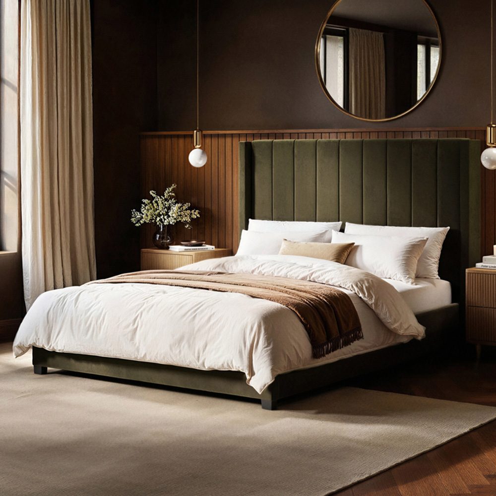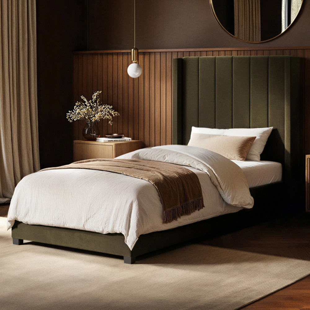 Flair Alba Khaki Velvet Double Ottoman Bed