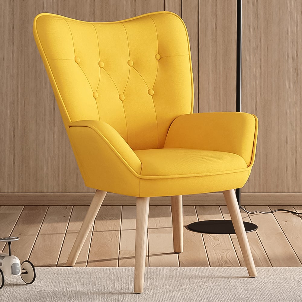 Furniture One Yellow Check Fabric Wing Back Fireside Armchair