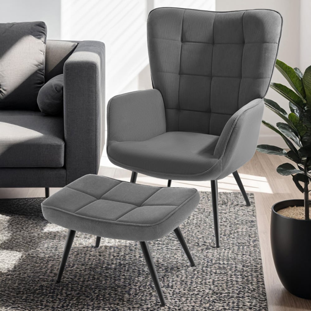 Luxor Orange Navy Blue Jumbo Cord Armchair