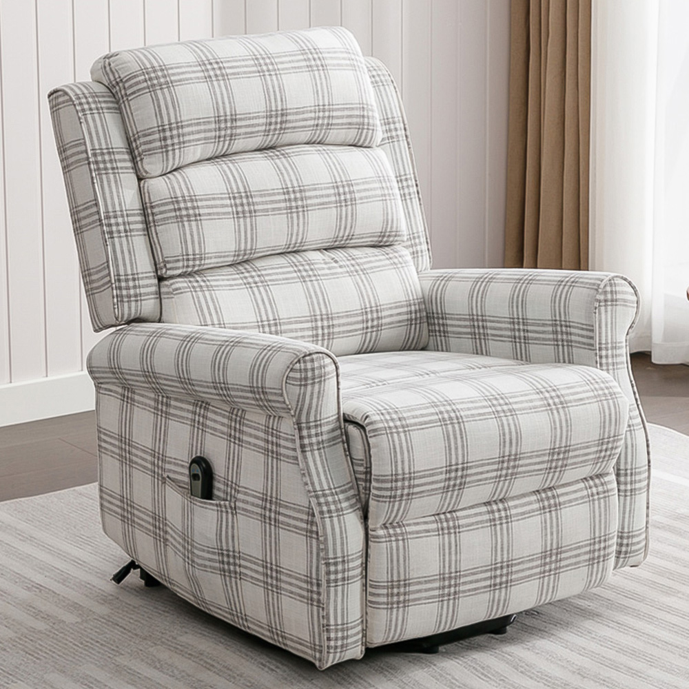 Furniture One Grey Check Fabric Recliner Massage Armchair