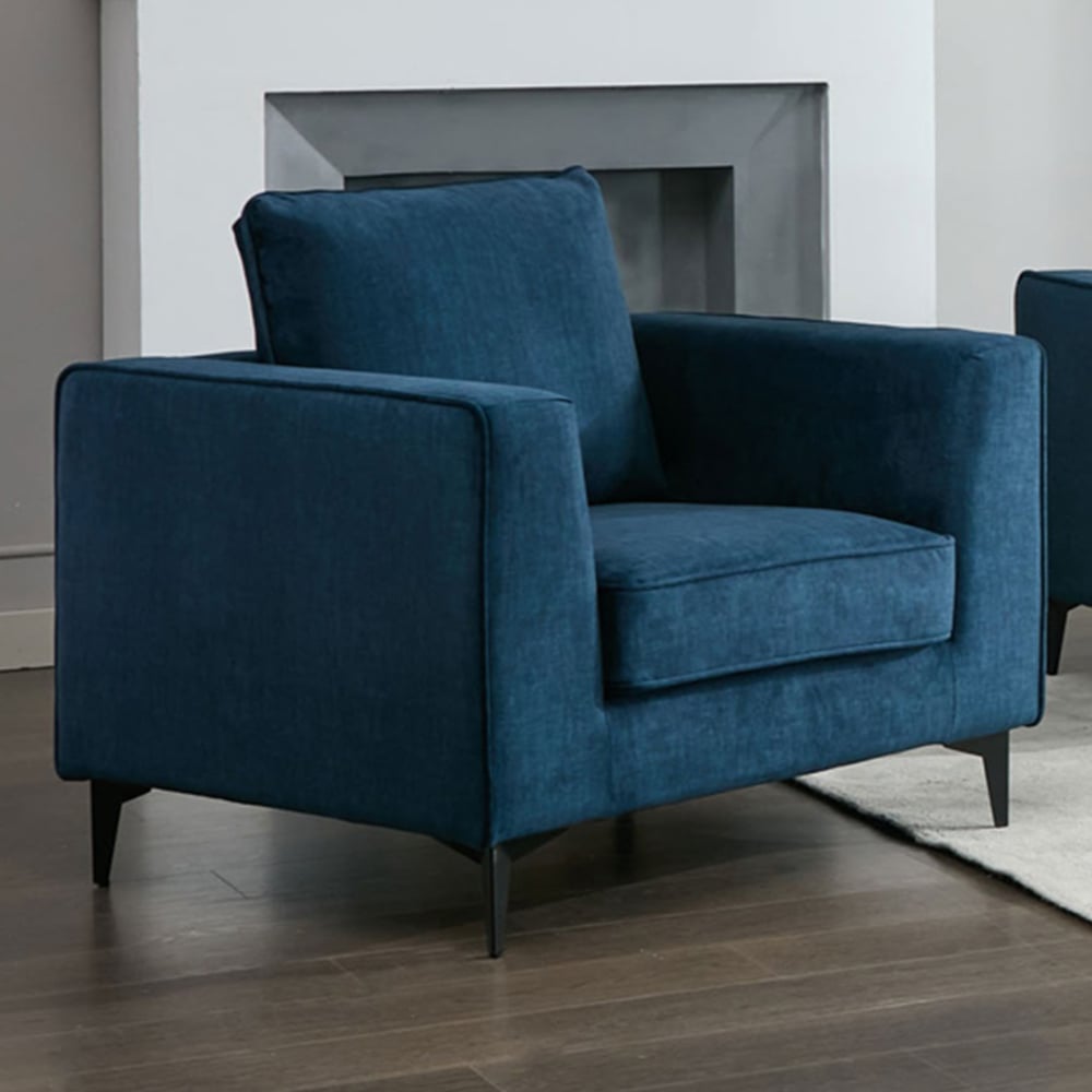 Sponsored Living and Home Faux Wool Upholstered Blue Armchair with Footstool