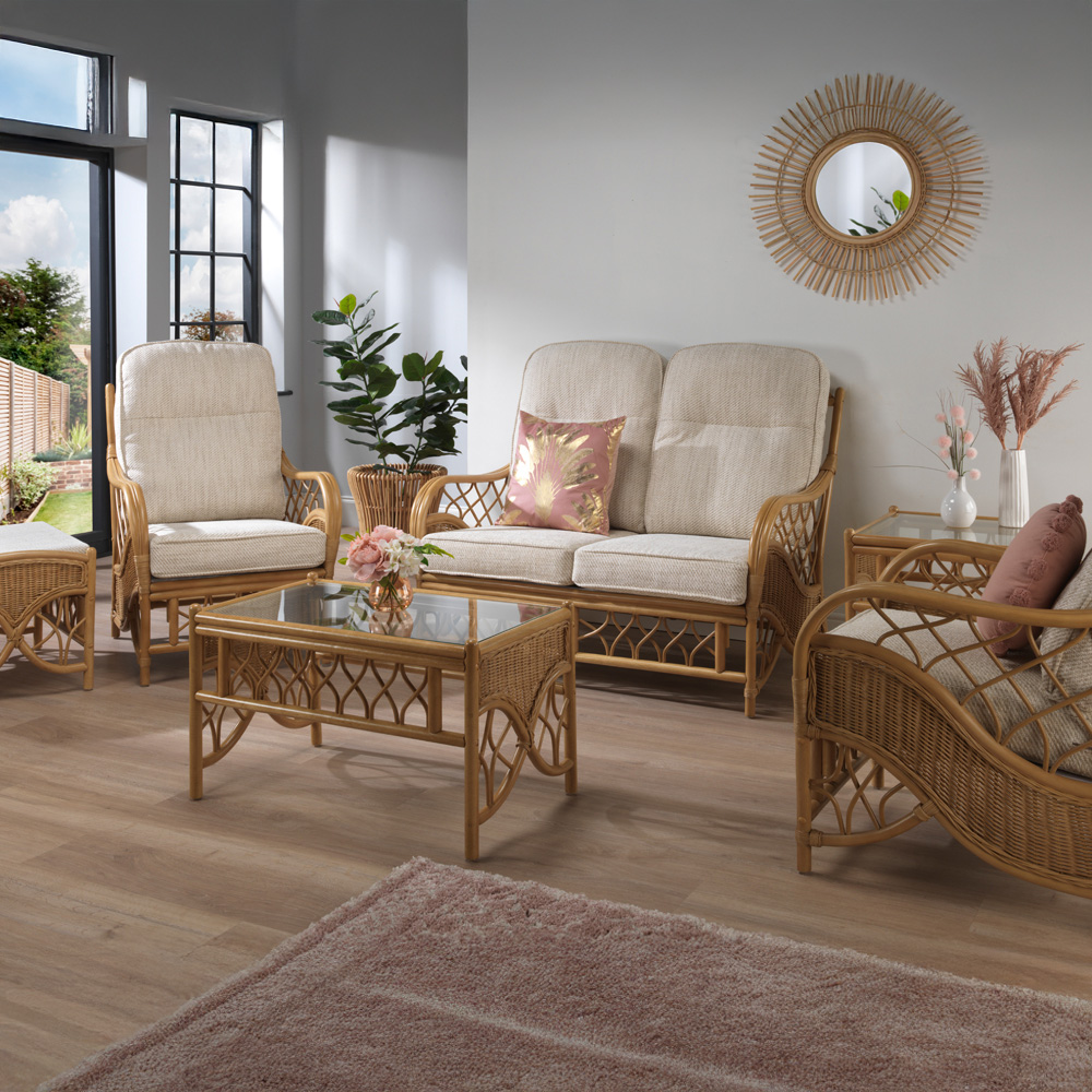 With our wide range of conservatory furniture, you can transform your garden room into a peaceful oasis. Enjoy the view of your garden with our comfy conservatory sofa and gorgeous side table to pop your drink, book, or your feet up for an afternoon snooze!