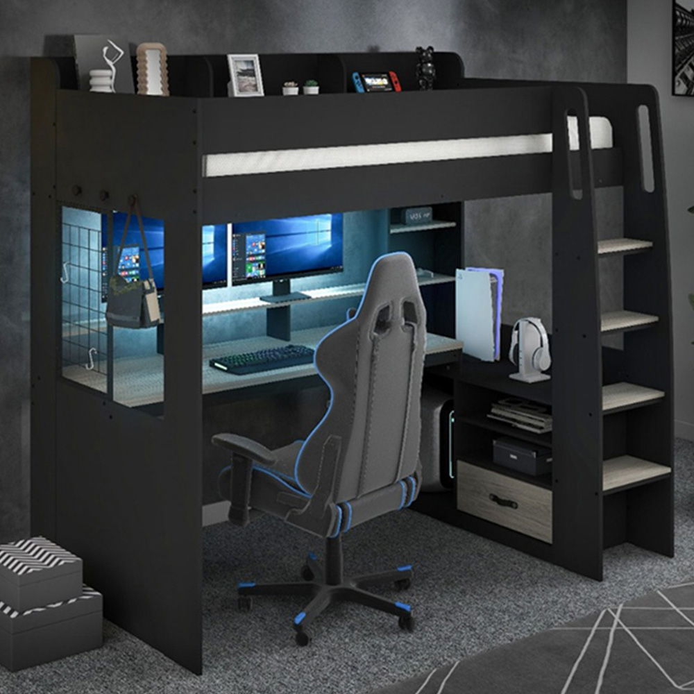 Flair Skyhigh Anthracite Wooden Gaming High Sleeper Bed