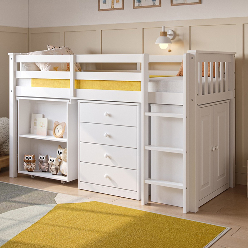 Flair Cosmic Wooden White Sleeper Bed with Storage
