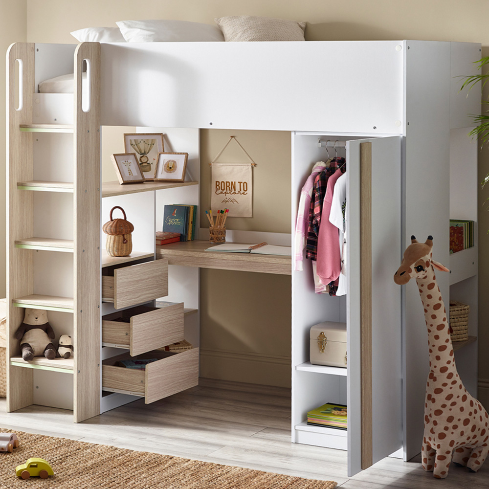 Julian Bowen Pegasus Grey Oak High Sleeper with Storage