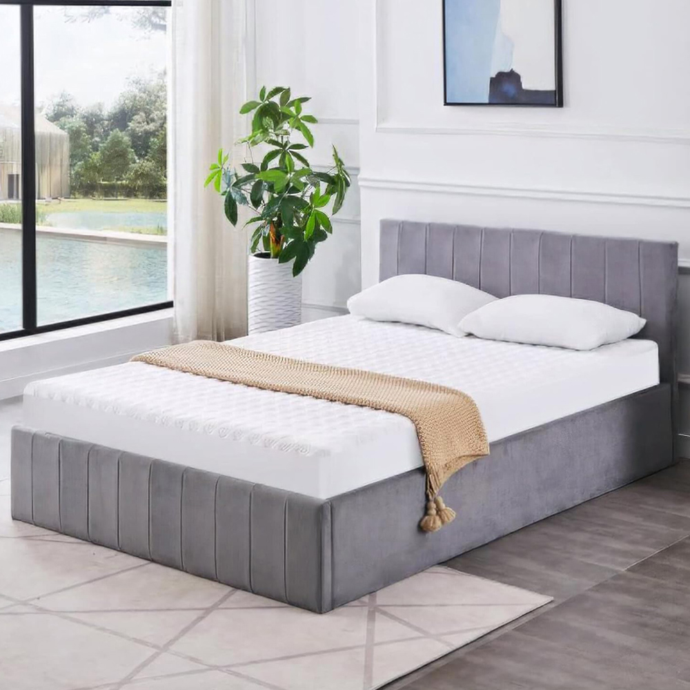 Home Treats Grey Velvet Double Ottoman TV Bed with Mattress